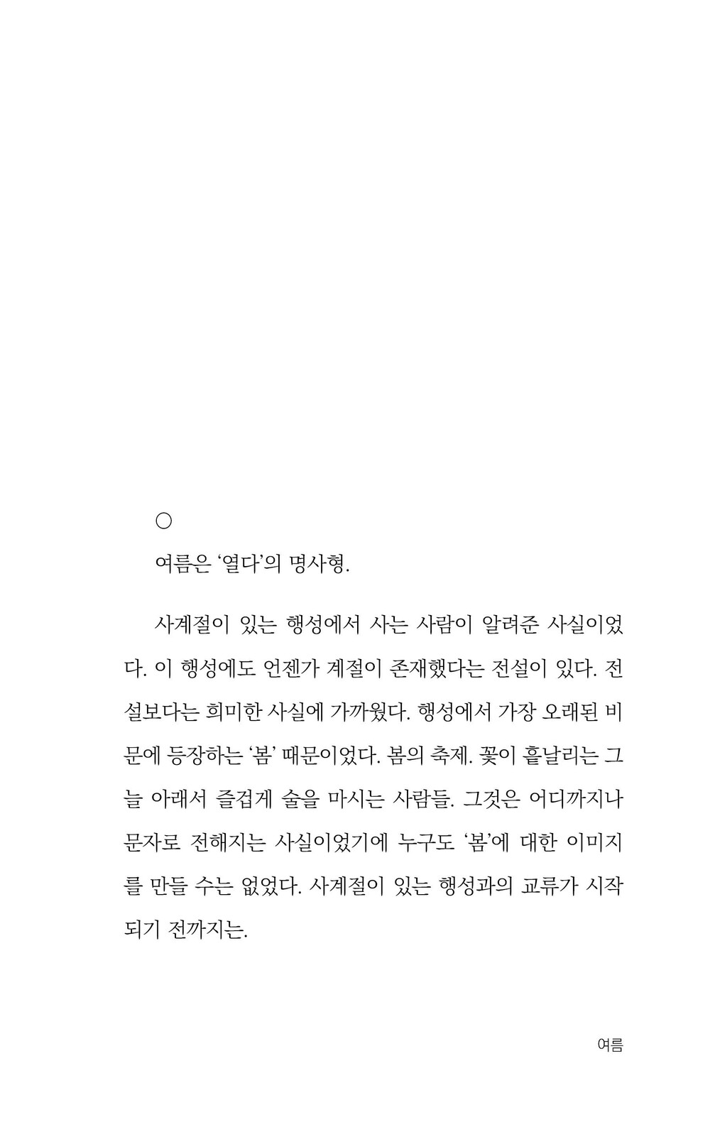 여름은 ‘열다’의 명사형. 사계절이 있는 행성에서 사는 사람이 알려준 사실이었다.