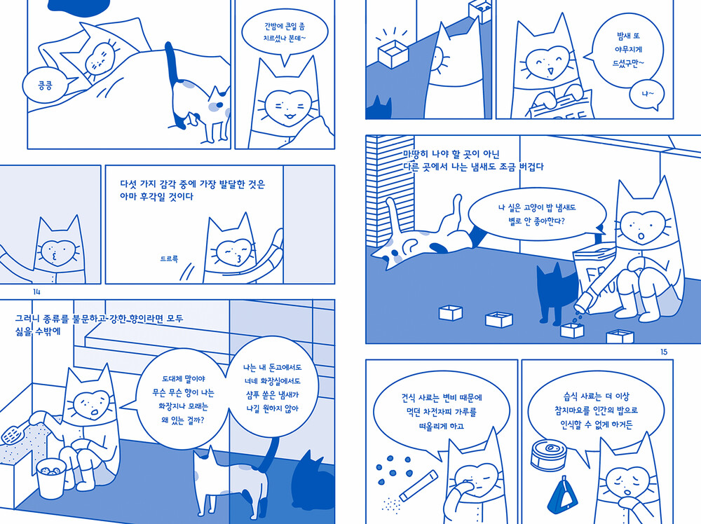 예고 없이 울리는 큰 소리나 부자연스러운 향을 싫어하며 밤에 활동하기를 좋아하니 나는 고양이와 제법 닮았다 (22p)