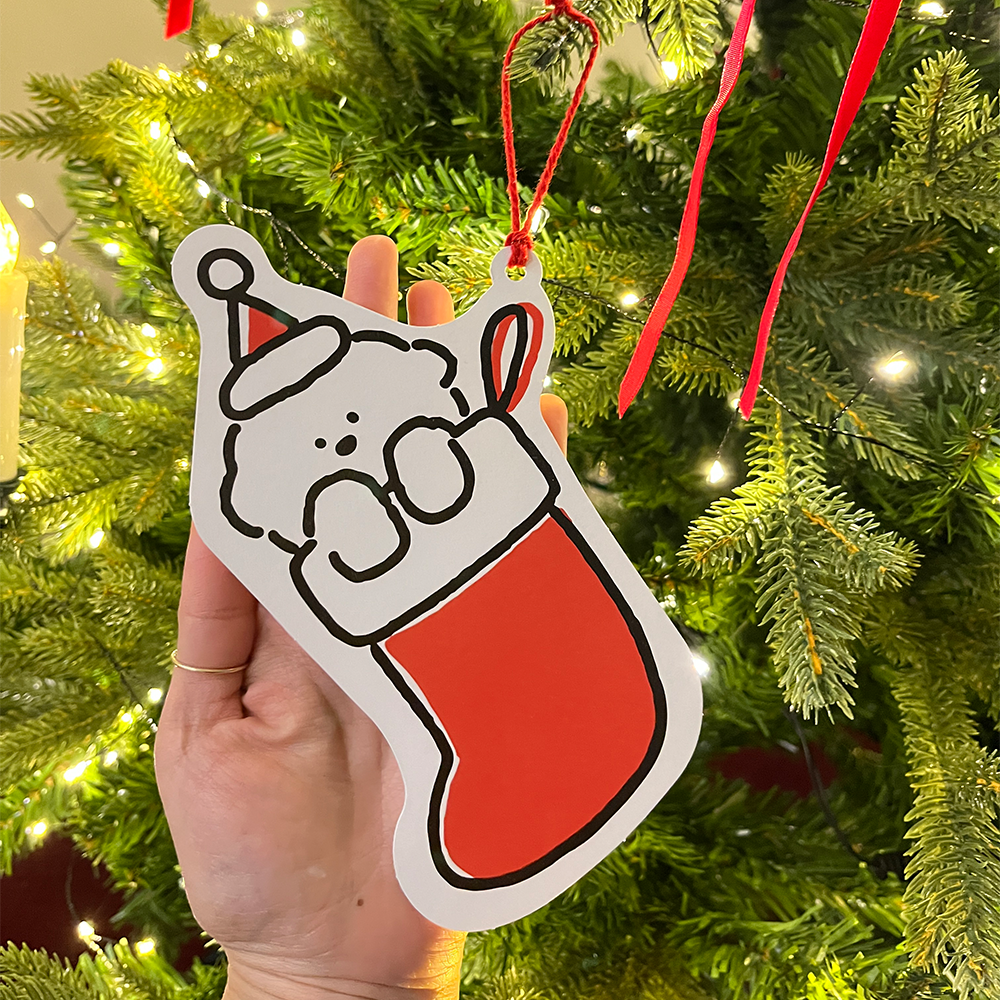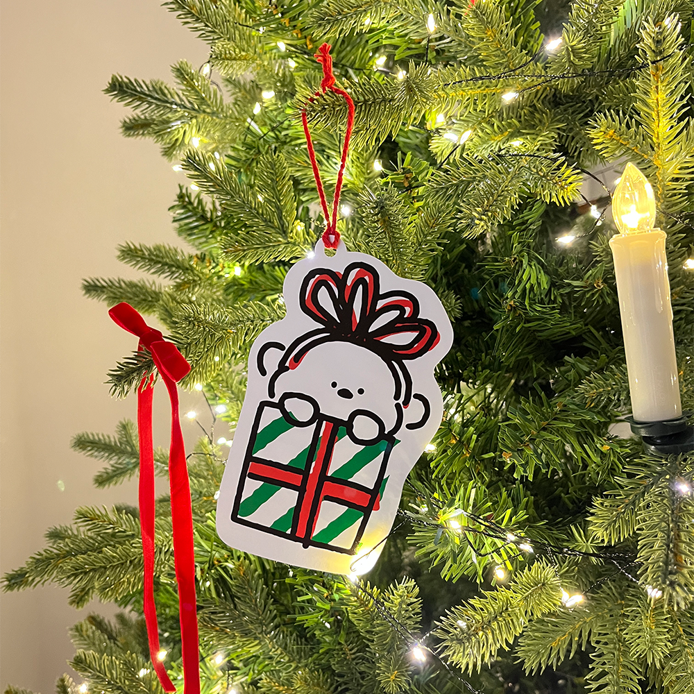 크리스마스 트리 장식으로도 쓸 수 있도록 카드에 빨간 실고리가 달려있습니다.