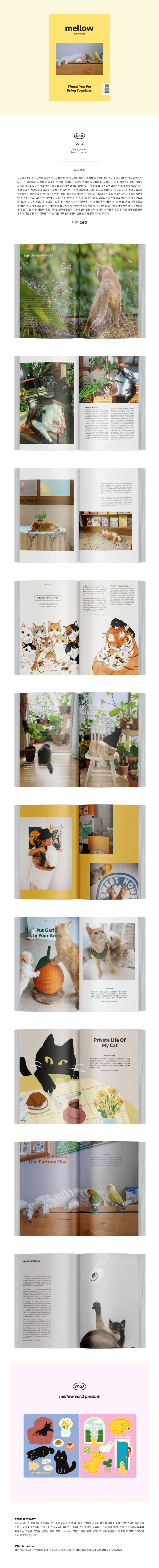 <mellow> 2호에서는 함께일 때 더 채워지는 온기에 관해 말하려 합니다. 혼자보단 둘이 좋고, 둘보단 서넛이 좋은 다복한 반려동물들과 그들의 반려인을 보며 함께의 의미를 되새겨볼 수있습니다. 작은 생명들을 품에 안으며 좌충우돌, 희로애락을 누리는 다견 다묘 반려인들의 삶을 함께 응원해 주시길 바랍니다.