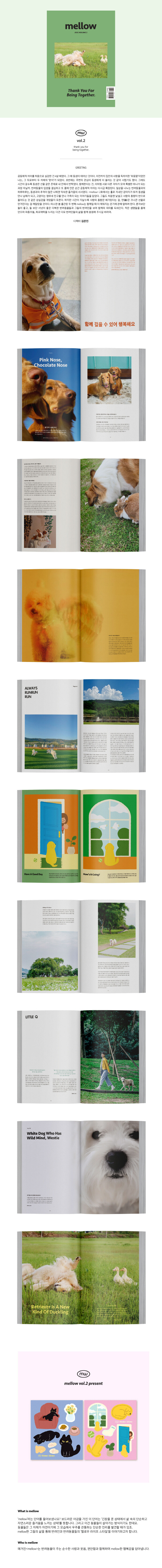 <mellow> 2호에서는 함께일 때 더 채워지는 온기에 관해 말하려 합니다. 혼자보단 둘이 좋고, 둘보단 서넛이 좋은 다복한 반려동물들과 그들의 반려인을 보며 함께의 의미를 되새겨볼 수있습니다. 작은 생명들을 품에 안으며 좌충우돌, 희로애락을 누리는 다견 다묘 반려인들의 삶을 함께 응원해 주시길 바랍니다.