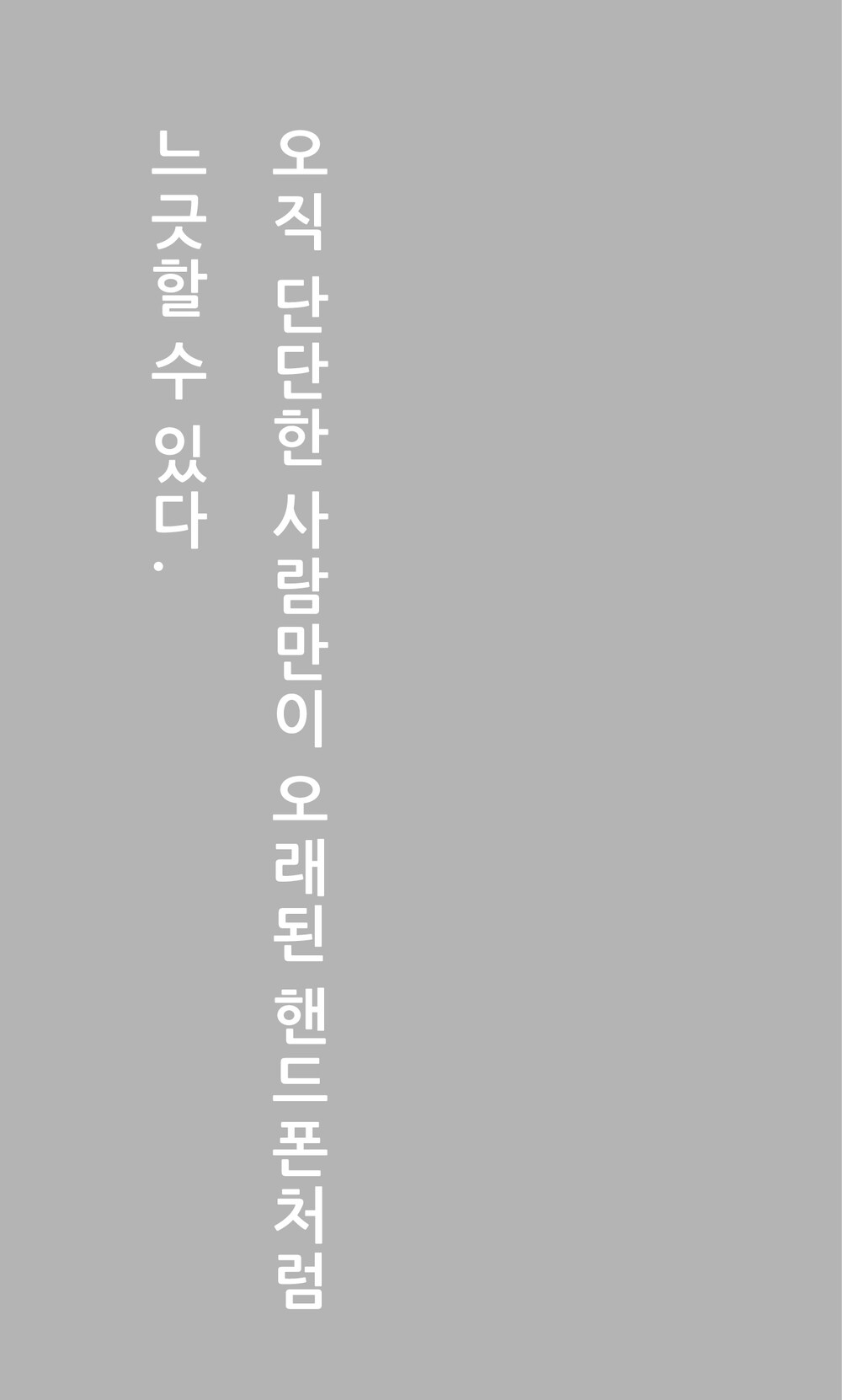 오직 단단한 사람만이 오래된 핸드폰처럼 느긋할 수 있다. 코밑수염 짙은 일본 순사도 씨를 말려버리는 고문도 필요없다. 느려터진 핸드폰 하나만 갖다주면, 우리가 얼마나 무르고 약한 사람인지 밝혀낼 수 있다. 23