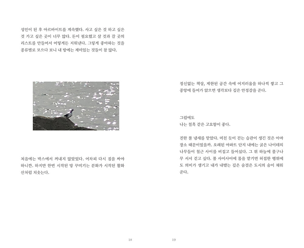 공간이 주는 기억을 기록합니다. 전시 아트북 <부스러기 줍기> 이후, 첫 개인 책인 <흐린섬>을 제작했습니다.