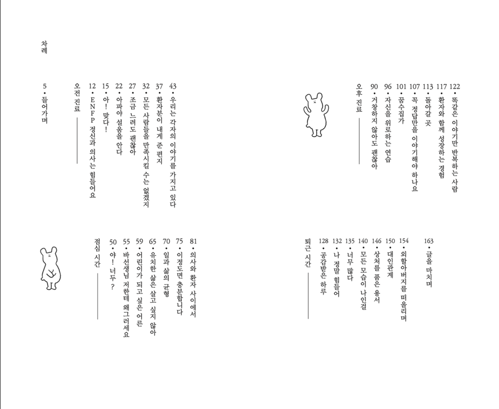 이 책은 제가 정신과 의사기에 경험을 한 특별한 일들이기 보다는 누구나 한 번쯤은 느껴봤을 우울과 힘든 여러 사건 사고들을 함께 이겨내는 여정을 담은 소중한 기록입니다. 여기에는 제가 환자들을 도우며 동시에 자신의 상처 또한 치유 받아가는 과정이 생생하게 담겨 있습니다. 이 책을 읽는 분들이 제 글을 통해 작은 위로를 얻길 바랍니다.