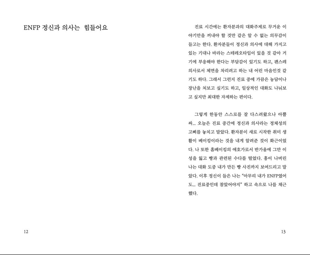 이 책은 정신과 의사인 제가 ADHD와 우울증을 앓았던 저의 경험을 바탕으로 쓴 따뜻한 내용의 에세이 모음집입니다.
