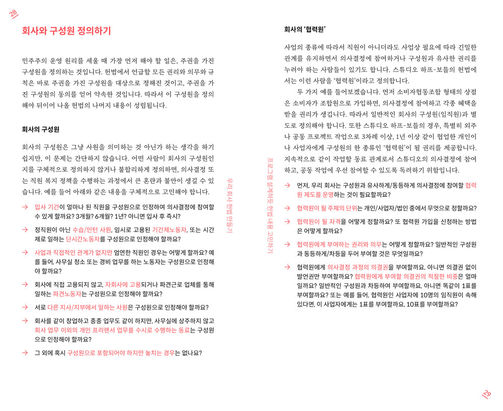 - p. 28 “프로그램 설계하듯 헌법 내용 고민하기 > 회사의 구성원 정의하기”