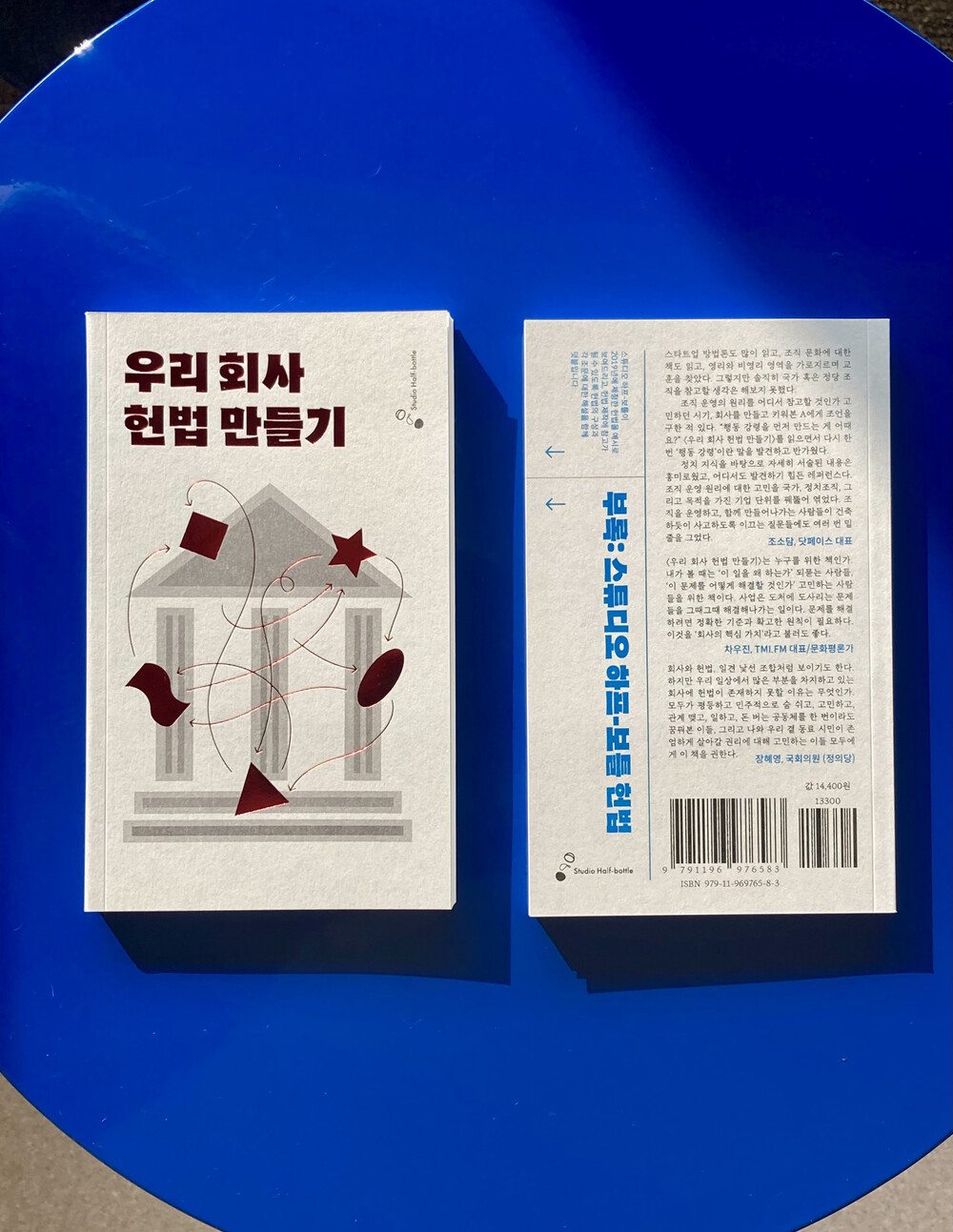 〈우리 회사 헌법 만들기〉의 저자인 조현익은 2019년에 독립 디자인스튜디오 “스튜디오 하프-보틀”을 창업했습니다. 회사를 막 개업할 때 그는 과거 직장들을 떠올리며 이런 질문을 했다고 합니다. “나는 왜 내 회사를 만들었지? 이 회사는 무엇을 위한 회사인가? 내 영리를 충족하면서 자아실현도 가능한 회사를 만들 수 있을까?”