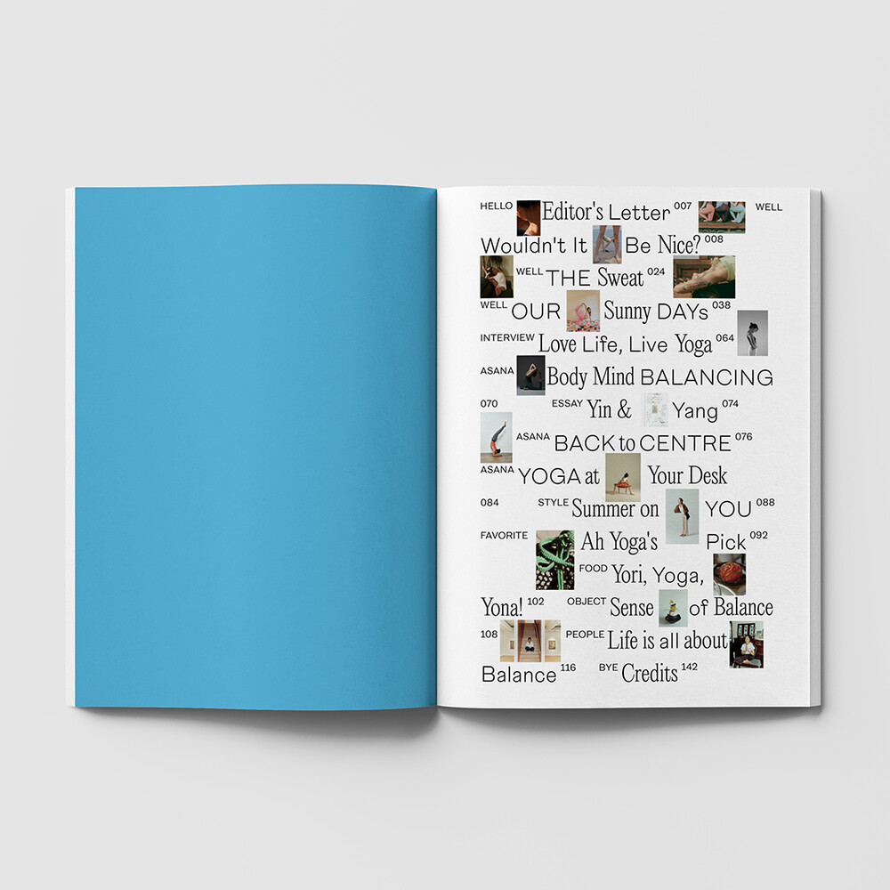 특별히 이번 호에는 티빙 <서울체크인>에서 이미 방영된 이효리와 친구들의 보기만 해도 미소지어지는 화보, 그리고 이효리가 요즘 생각하며 느끼는 균형있는 삶에 대한 진솔한 인터뷰가 실렸어요. 이밖에도 위트있는 시선으로 접근한 화보들, 전문가가 알려주는 밸러스를 찾는 기본 자세, 삶의 양극단을 조절하며 균형을 맞춰가는 사람들의 인터뷰, 건강한 식단을 담은 요리 래시피, 사무실의 의자를 이용한 간단한 요가 스트레칭, <아 요가>가 특별히 애정하는 브랜드의 소개 등 다양한 내용들로 알차게 구성했습니다.