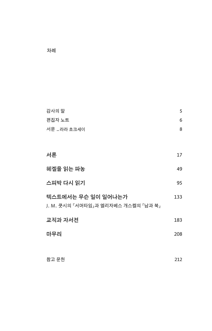 마르트니크 태생으로서 피식민 흑인성을 탐구하고 발언했던 프란츠 파농의 『검은 피부, 하얀 가면』부터 『제인 에어』를 둘러싼 세 여성 작가의 작품을 탈구축적으로 읽은 「세 여성의 텍스트와 제국주의 비판」 등 자신의 과거 텍스트, 남아프리카공화국에서 백인으로 태어나 노벨문학상을 수상했으나 결국 고향을 떠나 작품 활동을 하게 된 작가 J. M. 쿳시의 『서머타임』 등을 놀랍도록 세밀한 시선과 지성으로 독해하며 (인)문학을 읽고 교육하는 일의 참된 가치를 드러냅니다.