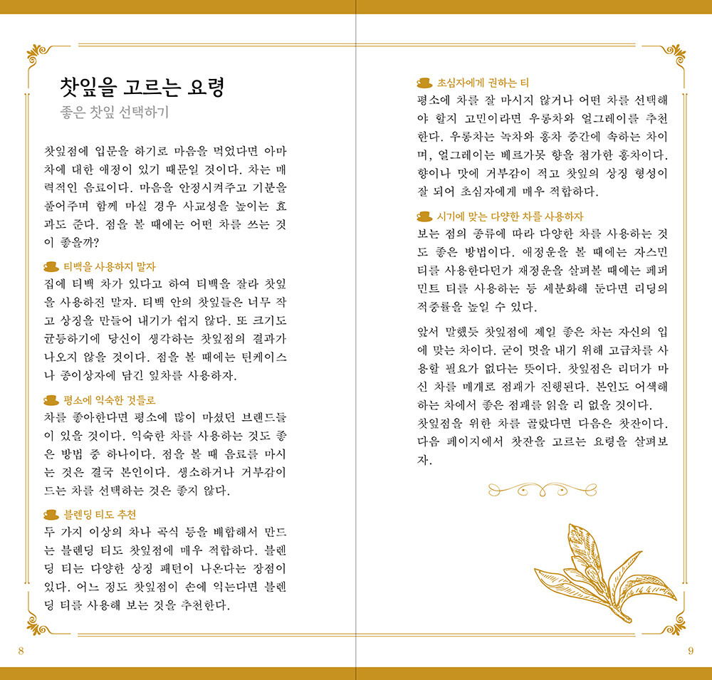 따라 차근차근 짚어가다보면 어느 순간 멋진 찻잎점술가가 되어 있을 것이다.