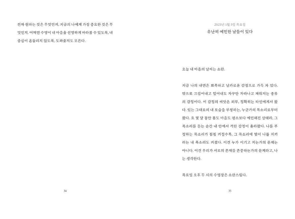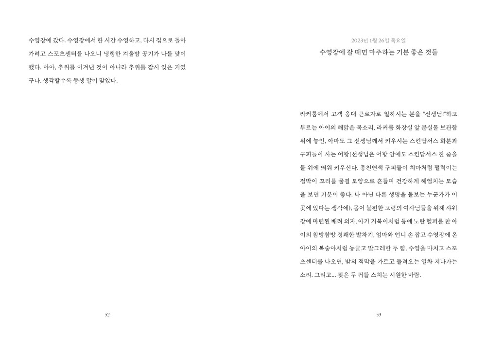 많은 시간 수영과 우울을 생각하고 쓰고 읽으며 겨울을 보냈습니다.
