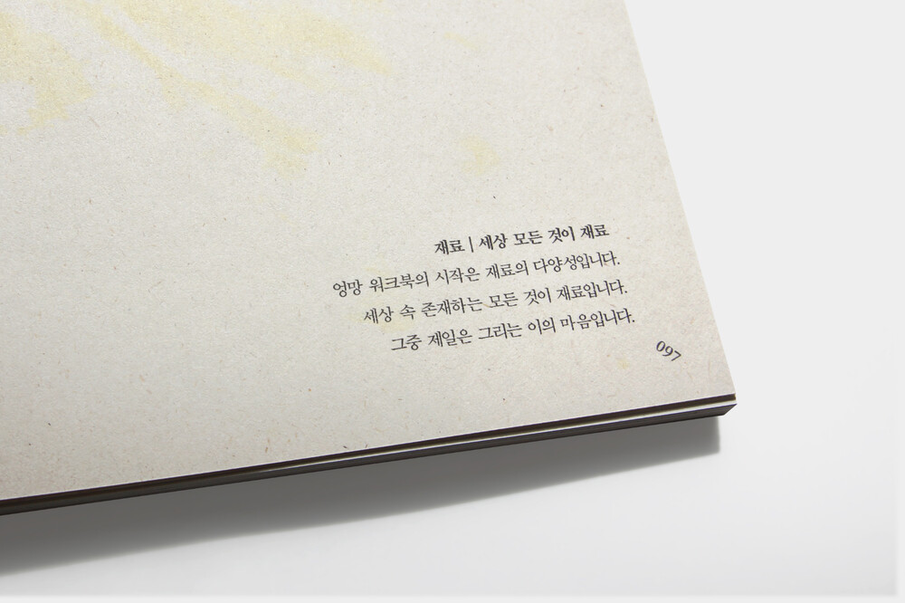 누구나 접근 가능한 미술교육 방법론을 10년 넘게 연구 한 큐레이터와 20년 넘게 종이 노트를 제작해 온 ‘그린 디자인웍스 공장’이 “마음대로 망쳐도 마음 편한 종이”에 대한 이야기를 나누며 시작되었습니다. 새하얗고 빳빳한 하얀 종이가 아닌 엉망 종이는 누구에게나 자유롭게 그리기 시작하는 기회와 용기를 줄 거라고 믿습니다.