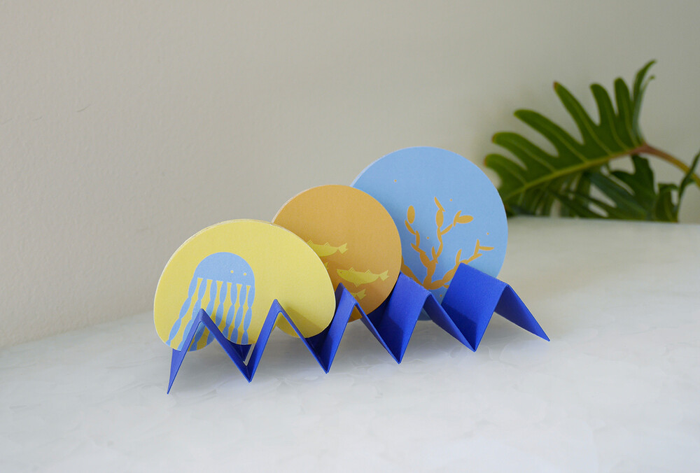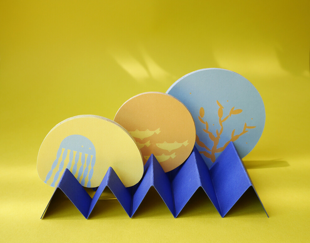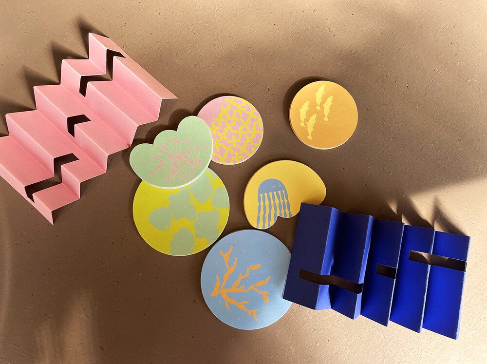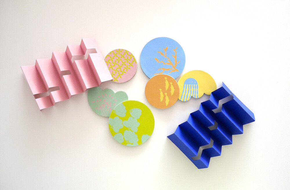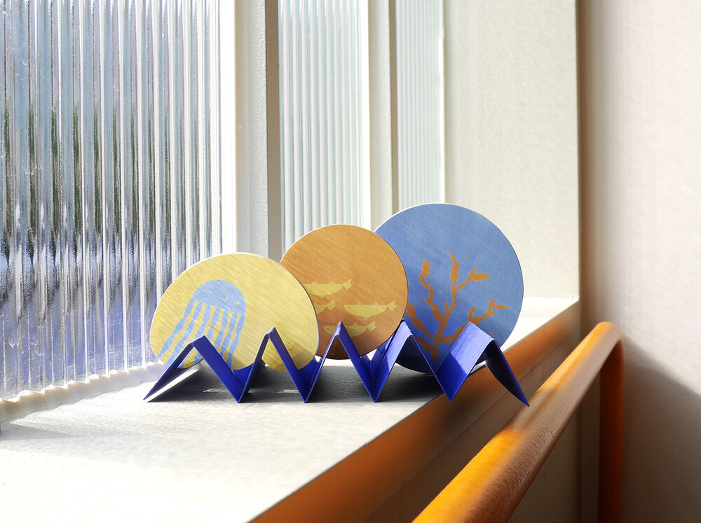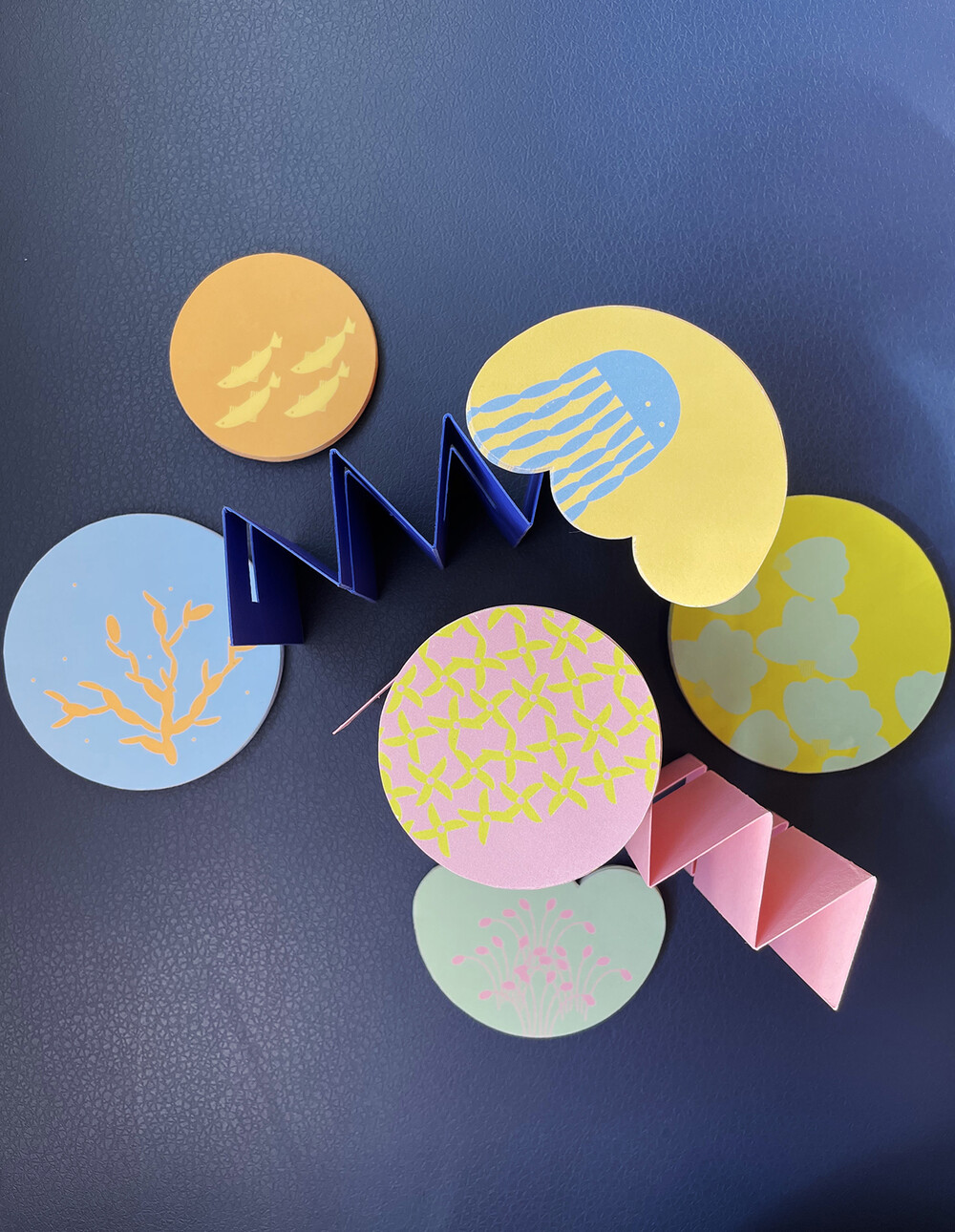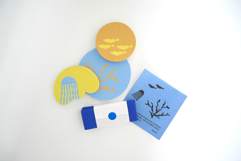 바다를 모티브로 해파리, 열대어, 산호 그래픽으로 만들었습니다