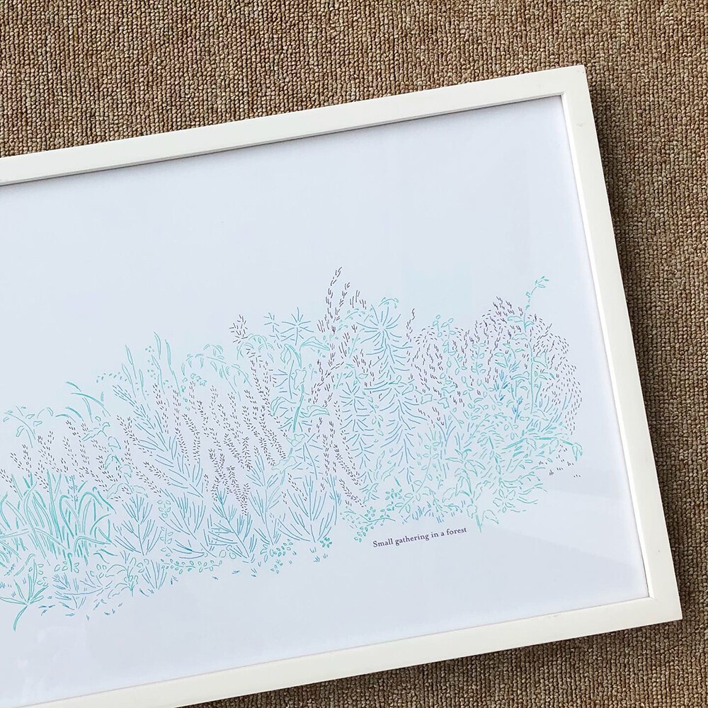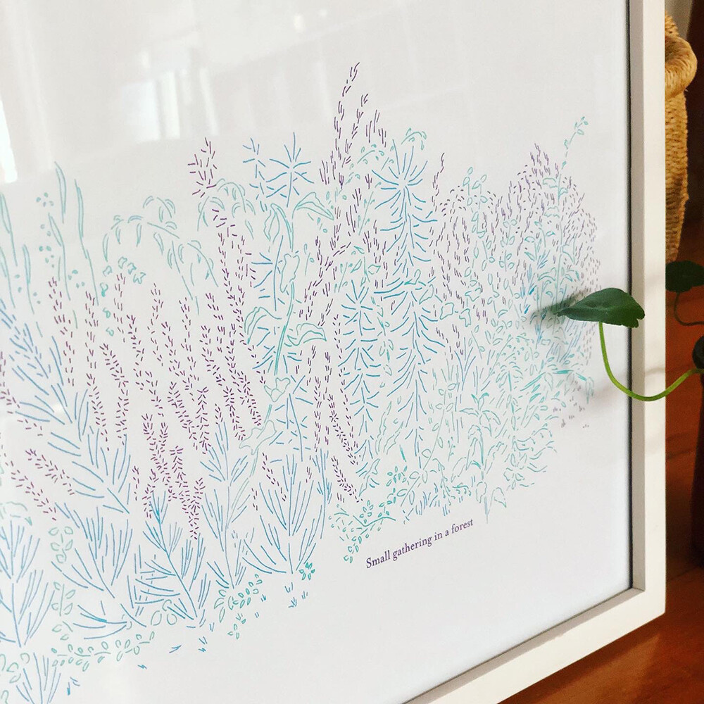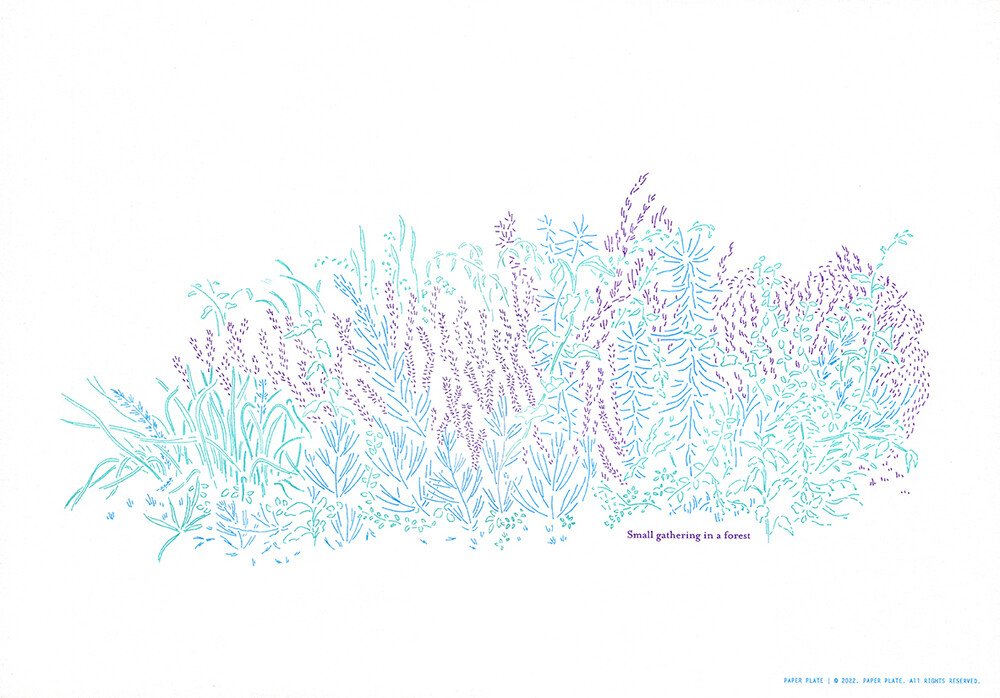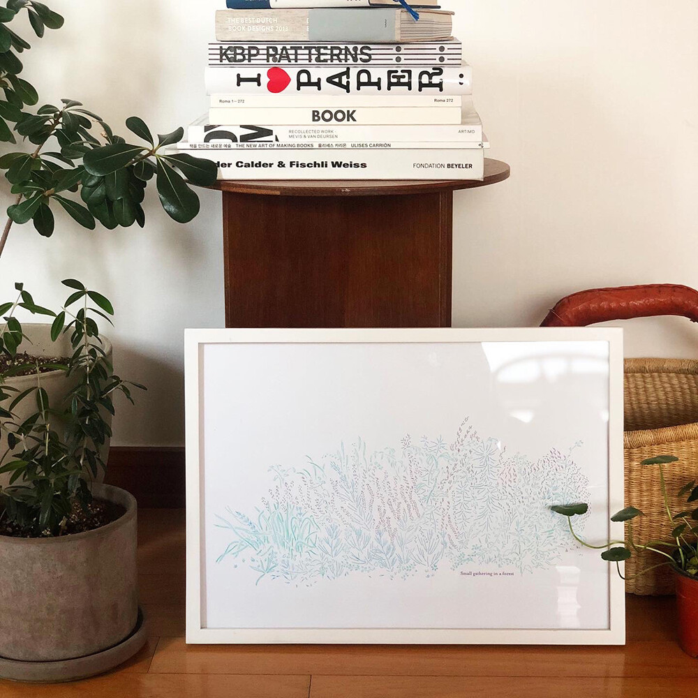 새로 작업한 숲 이야기 <Small gathering in a forest>은 비슷한 듯 다른 여러 종의 식물이 하나로 옹기종기 모여있는 모습을 라인 드로잉으로 담아내었습니다.
