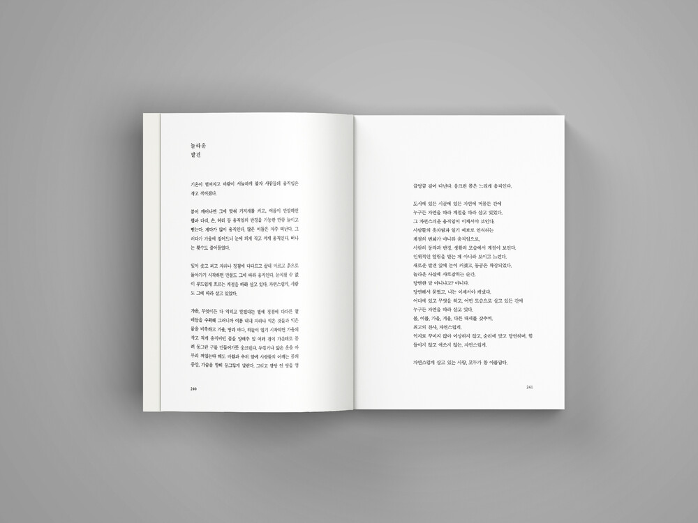 가을, 끝내 '갈' 인연인 계절과 시간을 보냈다.헤어져야만 만날 수 있다.사실 어디에도 영원히 머물 수 없어 더 잘 떠돌고 영원히 떠돌 수 없어서 더 잘 머물겠다는 인사를 사계 연작의 끝에 남겼다.