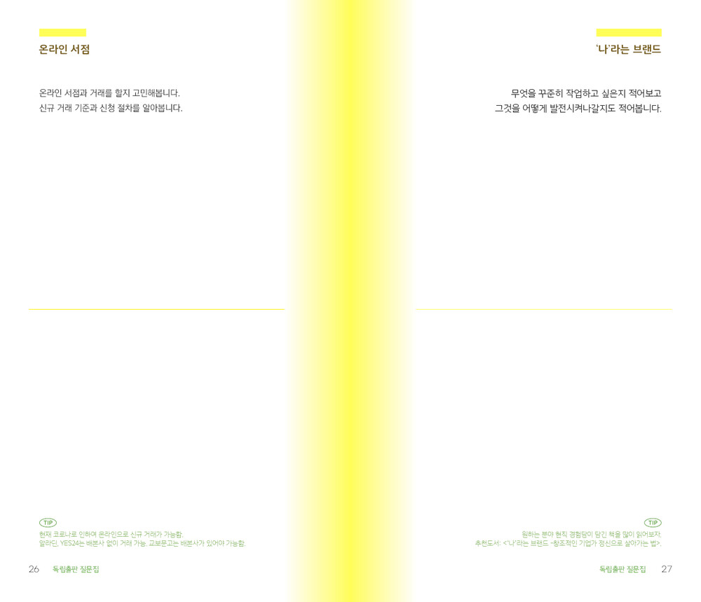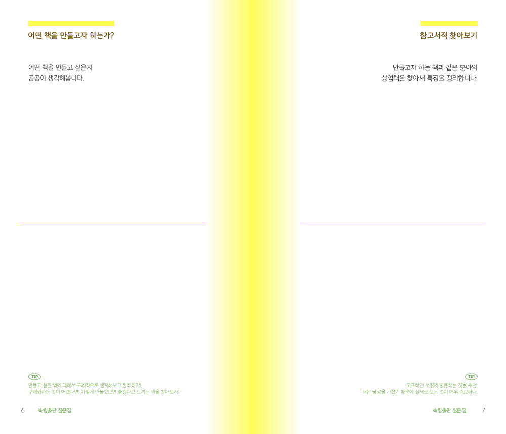 독립출판이란?/ 독립출판 서적 찾아보기/ 나는?/ 길찾기/ 어떤 책을 만들고자 하는가?/ 참고서적 찾아보기