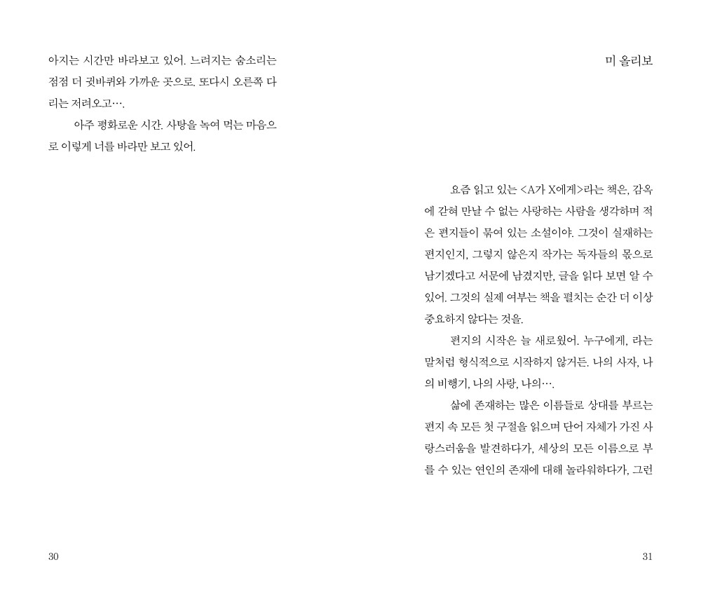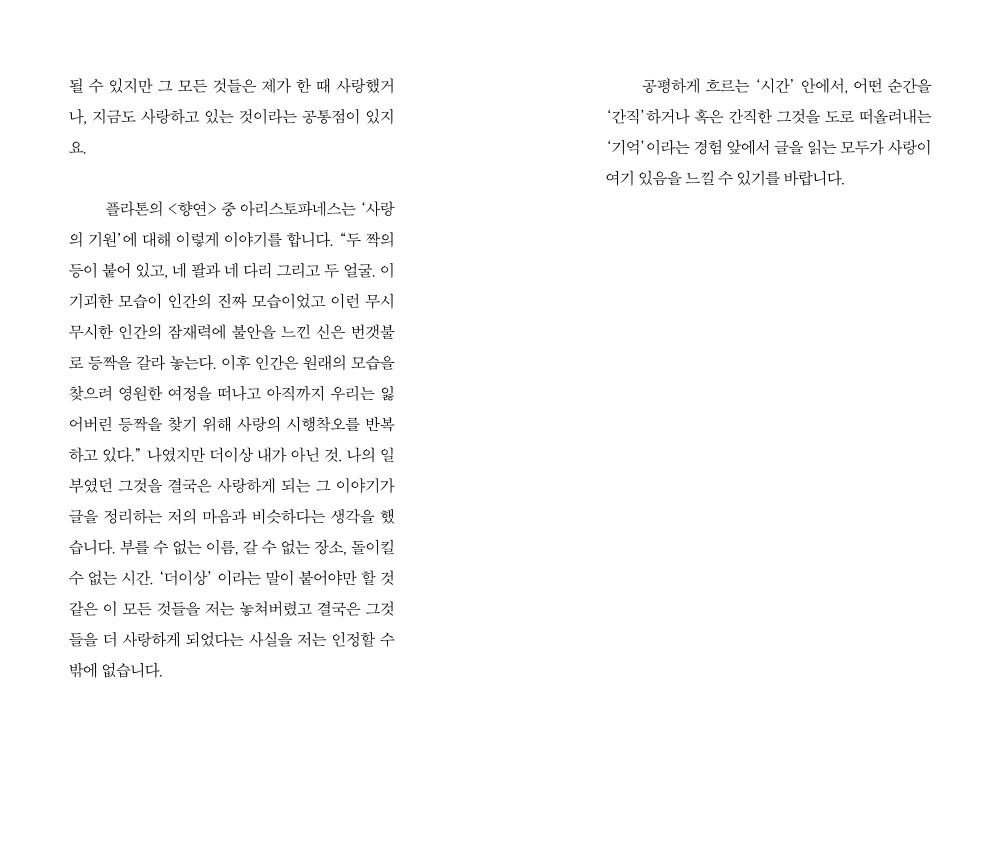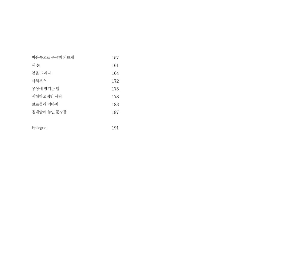 결국 사랑이었던 것들과 사랑하지 않고는 견딜 수 없었던 것들 그리고 부재를 증명하는 존재에 관한 것이 있습니다.