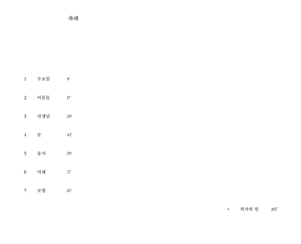 민수 선생님은 도통 알아차리기 힘든 사람이었다. 최소한의 말만 하고 최소한의 소리를 내는 사람. 최소한의 소시를 내기 위해 최소한으로 움직이는 사람. 최소한의 반경내에서만 알아차릴 수 있는 사람. 희미한 색의 옷을 입고 희미하게 웃는 사람.(p.33)