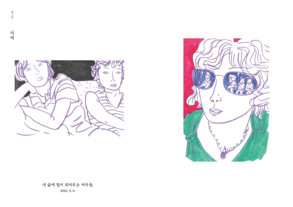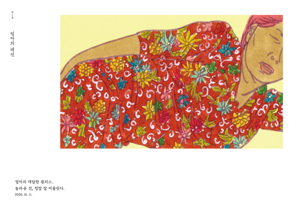 늘 새로운 것을 배우는 호기심 넘치는 엄마, 과묵하지만 섬세하고 다정한 아버지, 과감한 패션을 즐기는 호탕한 미녀 큰언니, 차분하고 손재주 좋은 동생 정희, 우애 좋은 두 조카 황기와 정기. 늘 유쾌할 것 같은 가족의 시간을 따라가다 보면, 말썽꾸러기 조카는 고민 많은 청년으로 성장하고 영원히 명랑할 줄 알았던 엄마는 하나둘 아픈 곳이 늘어간다. 싸이월드에서 블로그, 인스타그램으로 매체를 바꿔가며 일기가 쌓이는 동안, 어느새 중년으로 접어든 작가의 그림체도 조금씩 변화해간다.