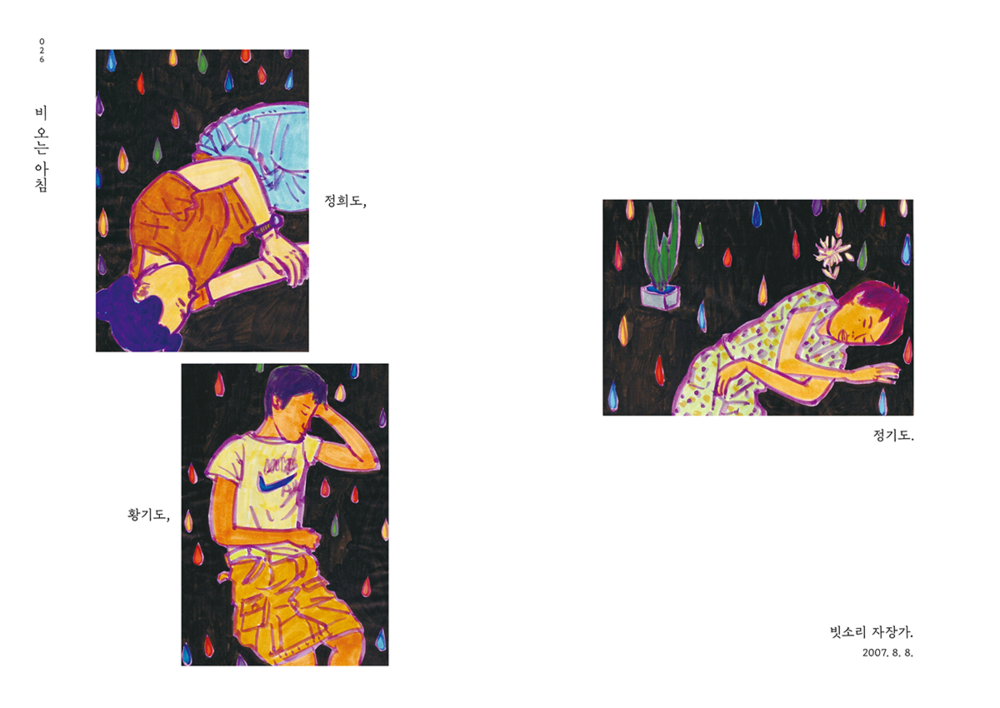 하루 일과를 마치고 터덜터덜 묵직한 발걸음으로 어두운 골목을 돌아 집 대문을 열면 환한 불빛과 함께 냄새가 난다. 집 냄새, 음식 냄새, 사람 냄새, 가족의 냄새. 이장미의 드로잉에선 이런 그리운 냄새가 난다. 가까운 존재들을 권태로워하지 않고 따스한 시선으로 기록하는 일을 지속하는 것. 그녀의 연필 끝에 우리가 익숙해서 잊고 있었던 위로와 사랑이 뜨끈하게 흐른다.