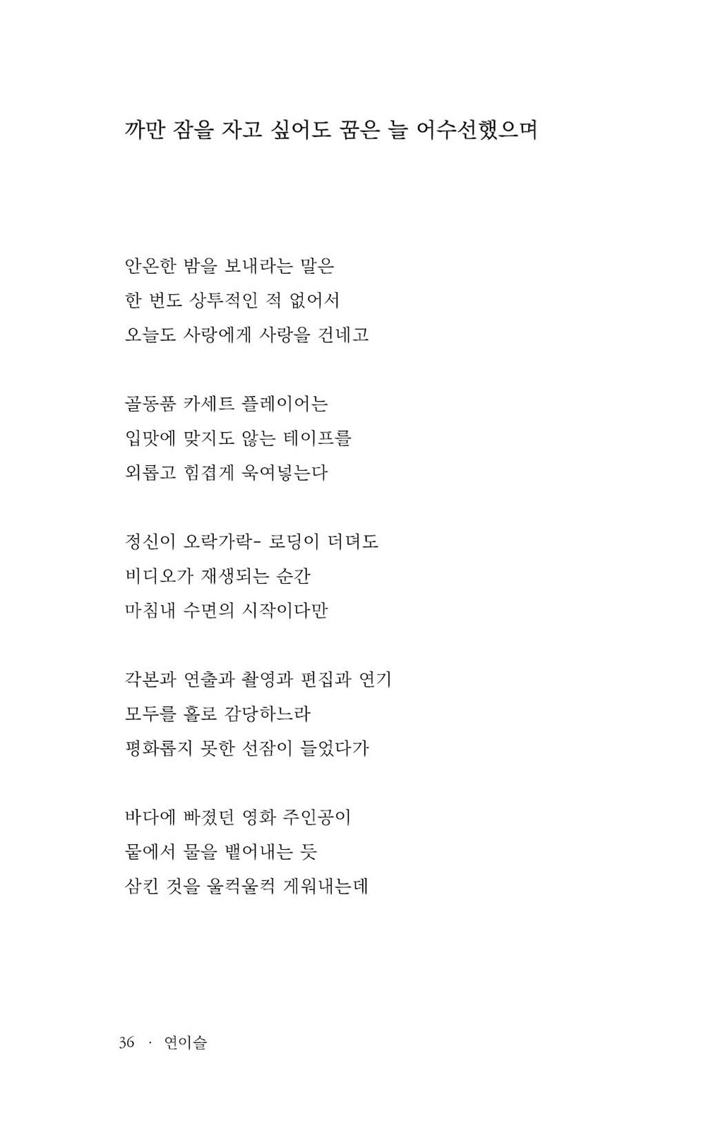 까만 잠을 자고 싶어도 꿈은 늘 어수선했으며 연이슬 36
