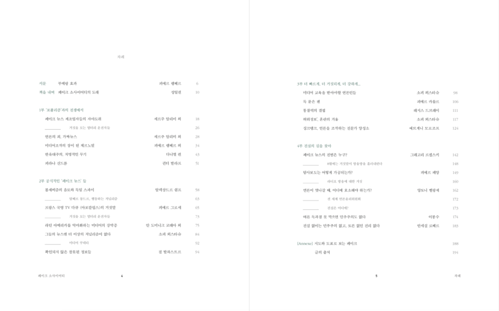 “오늘날을 요약할 키워드는 단연코 ‘가짜 뉴스’일 것이다. 실제로 미국은 물론 독일, 프랑스 등에서도 ‘가짜 뉴스 타파’가 정치적 우선순위로 손꼽히고 있으며, 에마뉘엘 마크롱 프랑스 대통령은 올해 1월의 신년연설에서 “가짜 뉴스의 부상은 오늘날 민주주의를 위협하고 있다” 고 말하기도 했다. 그러나 허위 정보들은 계속해서 발전을 거듭하고 있다. 이런 허위정보들 은 계속 회자되면서 마치 사실인 것처럼 여겨진다. 물론 가짜뉴스를 찾아 팩트체크에 성실한 ‘해독자’들은 이를 잘 피해가긴 한다.”