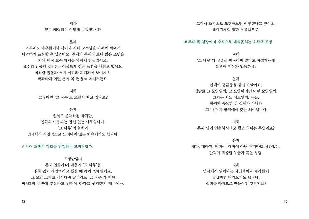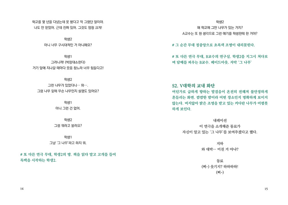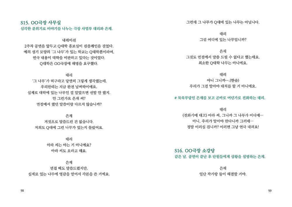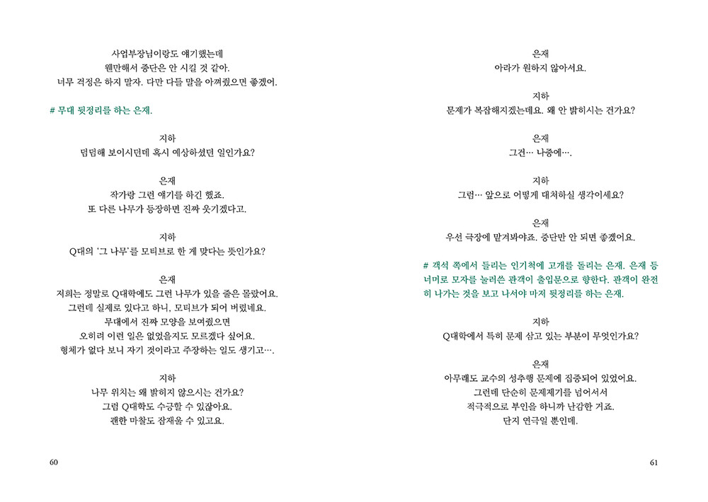 “이제 ‘그 나무’가 나무로 보이지 않기 시작했다.내가 들은 말, 겪은 일들과 얽혀 있는 사람들전부가 가지, 이파리 하나하나에 맺혀 있는 것만같다. 더 이상 그 나무는 농담거리가 아니다. 그자체가 조롱이자 희롱이며, 대학이 암묵적으로용인한 비열한 폭력이다. 그 앞을 오갔을 수많은여성들을 향한 거드름이며 비아냥이다.”