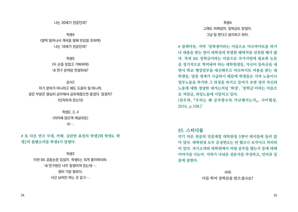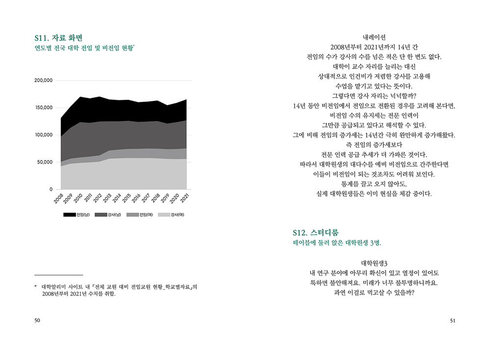 “여전히 다소간의 부당함을 참아 가며 연구를이어가고 있는 대학원생들이 있다. 차마가족들에게 알리지 못하고 앞으로의 진로를 위해혼자 감내하기로 결심한 원생들도 분명히 있을것이다. 그렇다고 학생들이 ‘아무렇지 않은 것’이 아님을, 대학은 직시해야 한다. 대학과 교수는학생들의 연구가 무탈하게 마무리될 수 있도록돕는 조력자라는 것을 잊지 않아야 한다.”