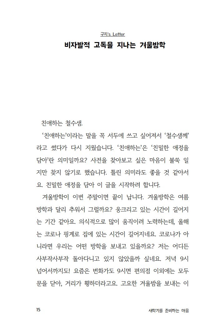 - 17쪽, 구지 '비자발적 고독을 지나는 겨울방학'