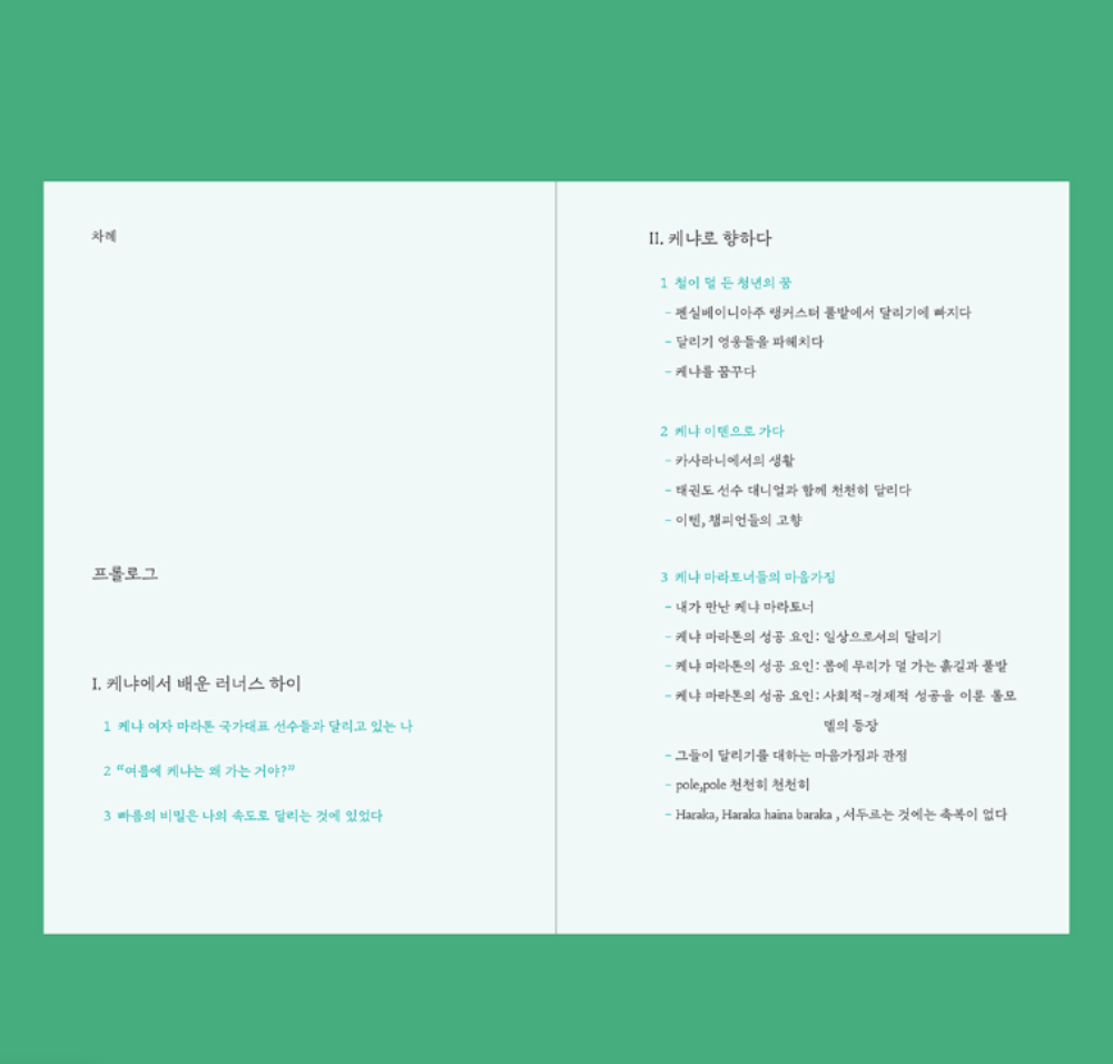 달리기가 신체와 정신 건강에 주는 이로움을 설명하는 대부분의 에세이와 달리 이 책은 달리기를 통해 몸과 마음을 되찾은 다음의 이야기를 담고 있다. 즐거움을 위해서든 건강을 위해서든 달리기를 일상적으로 하고자 하는 이들에게 필요한 메시지를 전달한다. 평소 마라톤과 육상 종목에 관심을 둔 독자들에게는 이 책이 케냐 선수들이 유난히 세계 대회에서 높은 성적을 거두는 이유를 이해하는 기회가 될 것이다. 케냐 마라톤의 대부 ‘브로콤‘, 세계 대회에서 우승을 차지한 마라토너와 코치와의 인터뷰는 비단 달리기뿐 아니라 무언가를 성취하는데 필요한 조건에 대한 통찰을 제공한다.