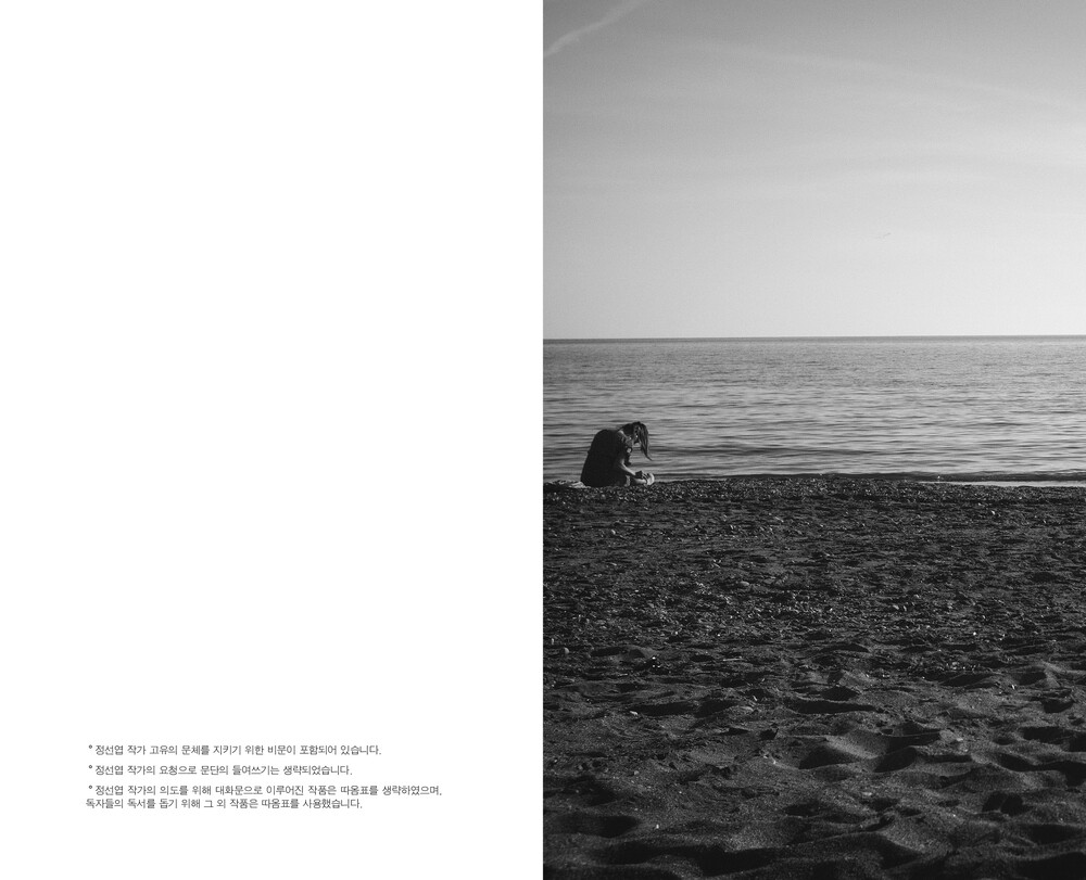 《해변의 모래알 같이》는 독립적으로 자유롭게 문학 활동을 하는 정선엽 작가와 출판사 별빛들이 협업하여 펴낸 초단편 소설집이다.