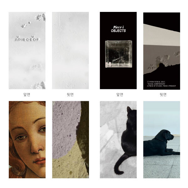 커스텀 아티스트 현예슬과 어피스오브 스튜디오의 협업으로 만들어진 아트북이자 캠패인북 <Social Comparison> 과 함께 제작된 책갈피 세트입니다.