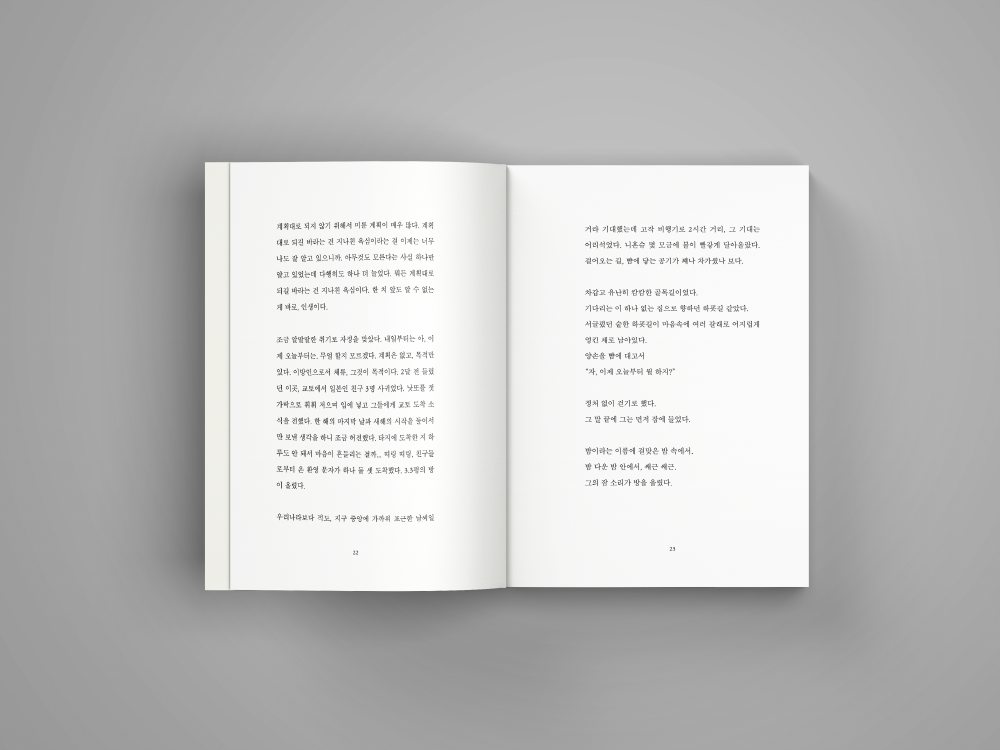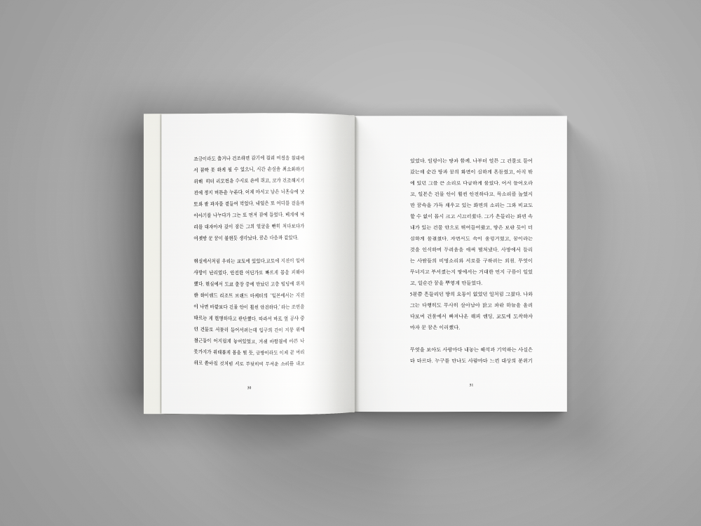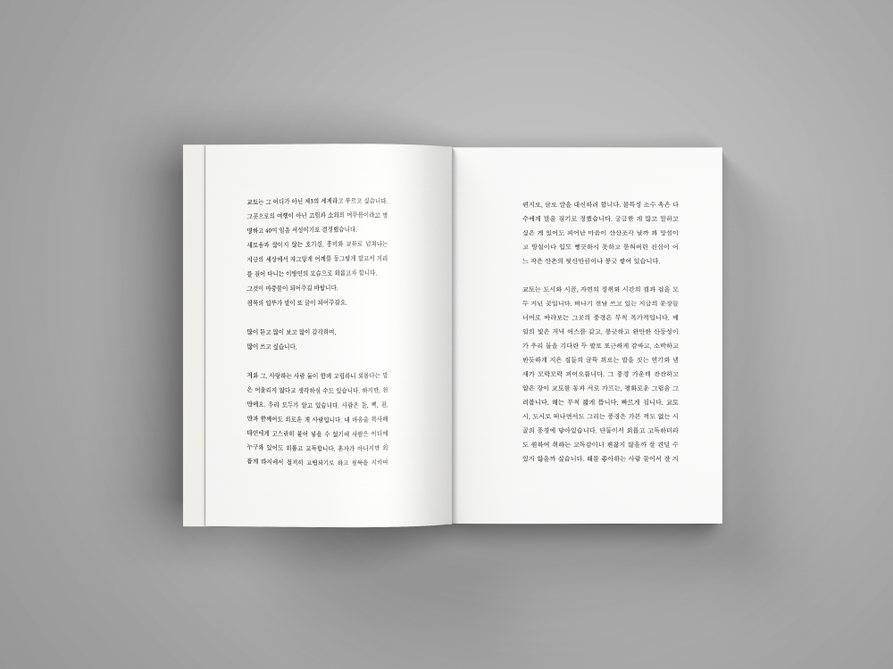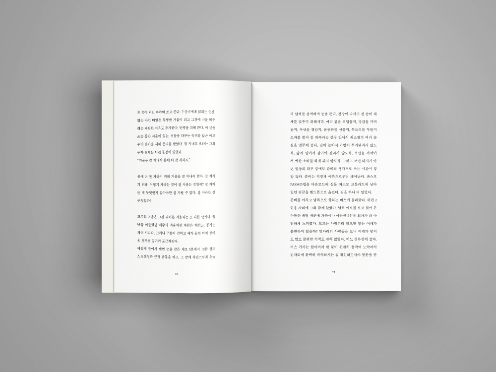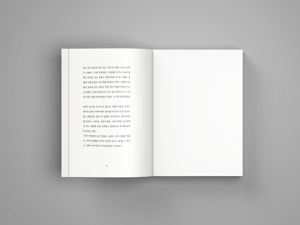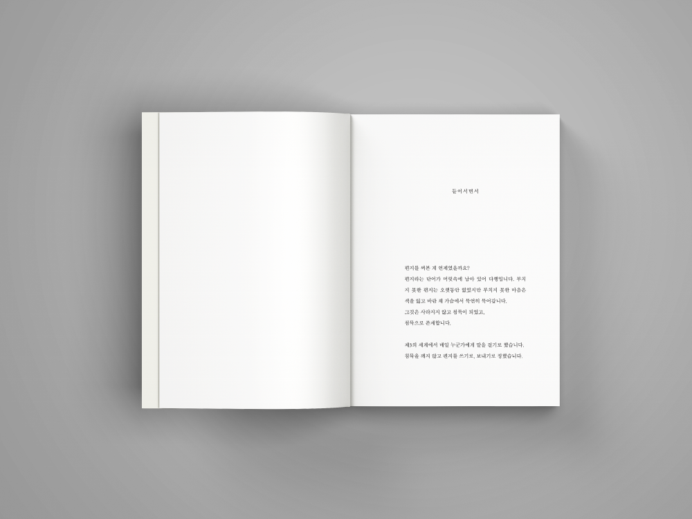 어둠이 그 어느 계절보다 무겁게 드리우고, 낮은 정적이 하루종일 감도는 교토의 겨울 안에서 불특정 다수에서 보내는 편지를 매일 써내려갔다. 교토 가모 강의 징검다리처럼, 흐르는 세상 위로 단단하게 놓일 수 있는 질문이자 보이지 않는 다음으로 건너갈 수 있는 '문'이 되기를 간절히 바라며.