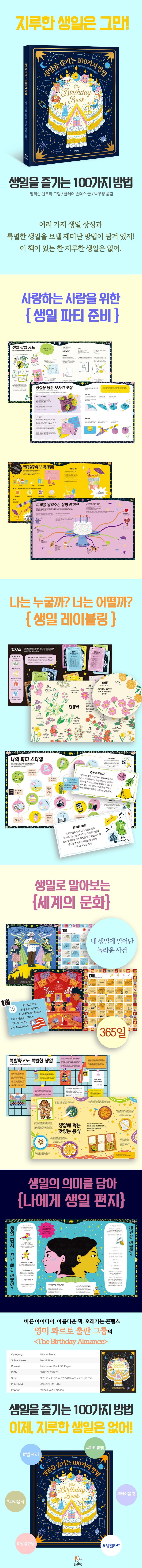 화려하고 멋진 일러스트가 돋보이는 영국 콰르토 출판 그룹의 책을 소개합니다. 화려한 표지만큼이나 생일에 관한 온갖 콘텐츠를 모았습니다. 한장한장 넘겨볼 때마다 아이디어가 반짝이고 행복한 상상을 하게 됩니다. 어떻게 활용하느냐에 따라 무궁무진하죠. 어린이들이 손꼽아 기다리는 생일. 즐겁고 의미있는 생일을 계획할 수 있어요.