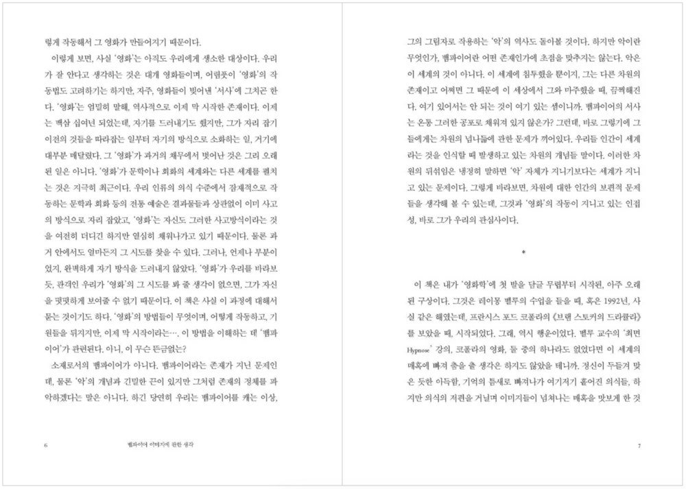 ‘영화’와 뱀파이어 사이에 놓인 놀라운 연관을 밝히는 데 영화의 소재로서 영화 속 뱀파이어를 분석하는 일은 논외로 둔다. 다만, 근대라는 자장 안에서 뱀파이어와 영화가 어떤 인접성을 갖는지, 악을 비롯한 인간의 의식 수준이 어떻게 변화했는지 그 시대 정신을 탐색할 것이다. 그 지난한 생각의 과정은 늘 하나의 질문으로 수렴된다. 바로 ‘영화’란 무엇인가? 라는 질문이다.