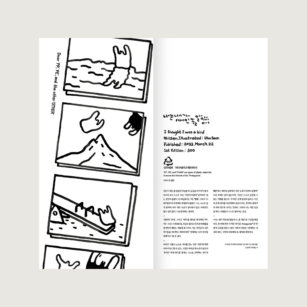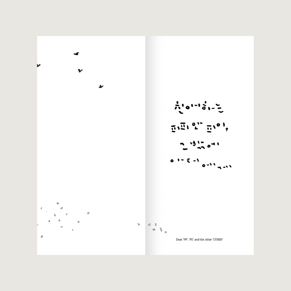 책 속에 언급되는 ‘피피’와 ‘피이’, 그리고 ‘아더’를 영어로 표기하면 ‘PP’, ‘PE’ 그리고 ‘OTHER’로, 비닐과 플라스틱의 분리배출을 용이하게 해주는 재질명 표시이다. 이는 주인공의 모든 친구들을 의미한다. 해석하자면 “친애하는 나의 친구들에게”라고 할 수 있다.