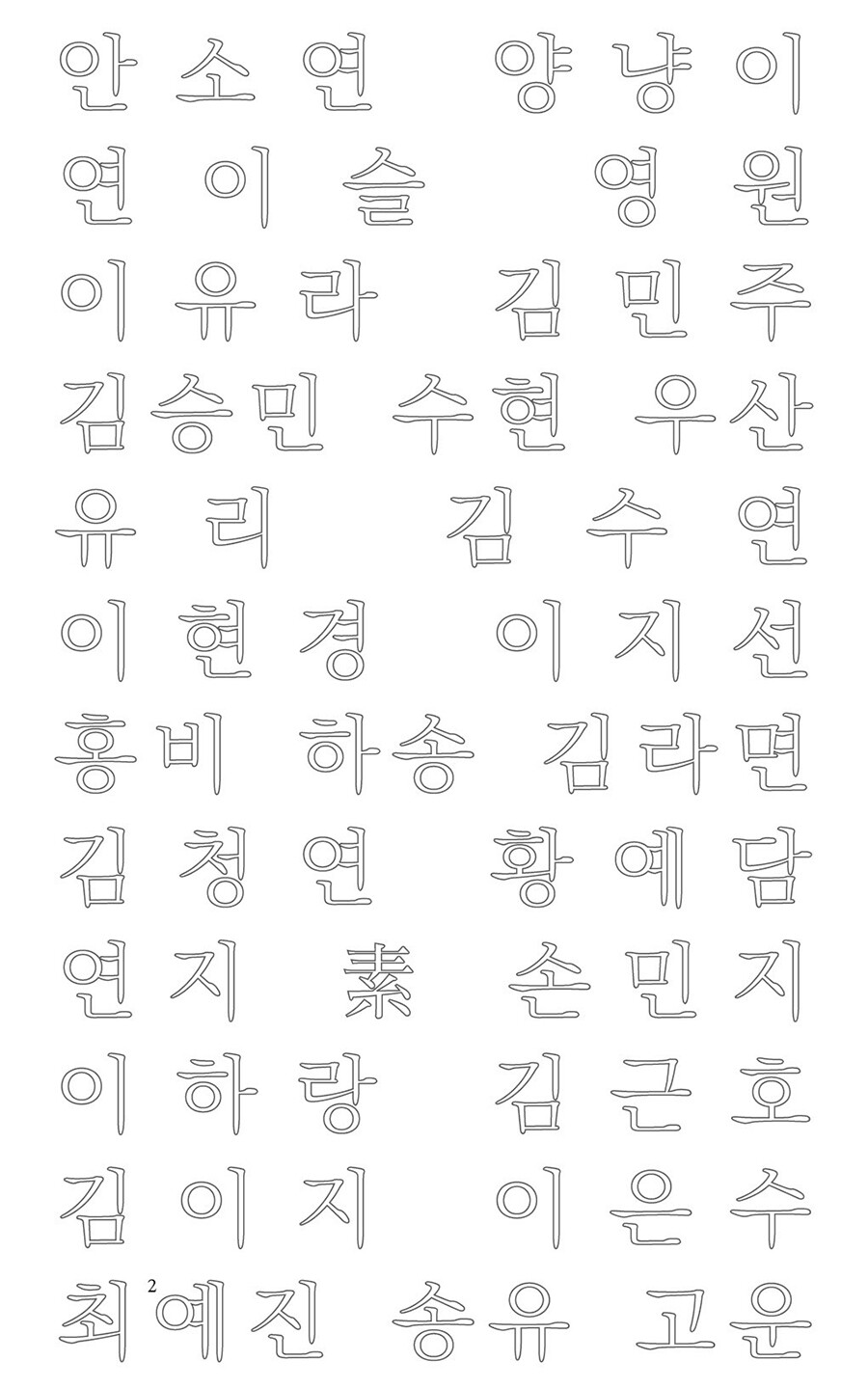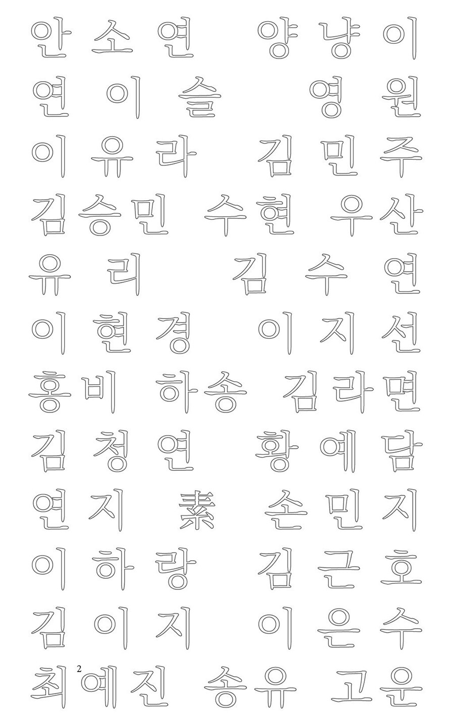 안소연 양냥이 연이슬 영원 이유라 김민주 김승민 수현 우산 유리 김수연 이현경 이지선 홍비 하송 김라면 김청연 황예담 연지 素 손민지 이하랑 김근호 김이지 이은수 최예진 송유 고운 이세계 이도아 박영신 난바다 도이 김재원 이소희 이준환 최현서 장지명 이시윤 리아 이승민 임동영 허승우 이지우 김범석 이인효 상인 시준 성지나 한영원 이예희 종로 고은호