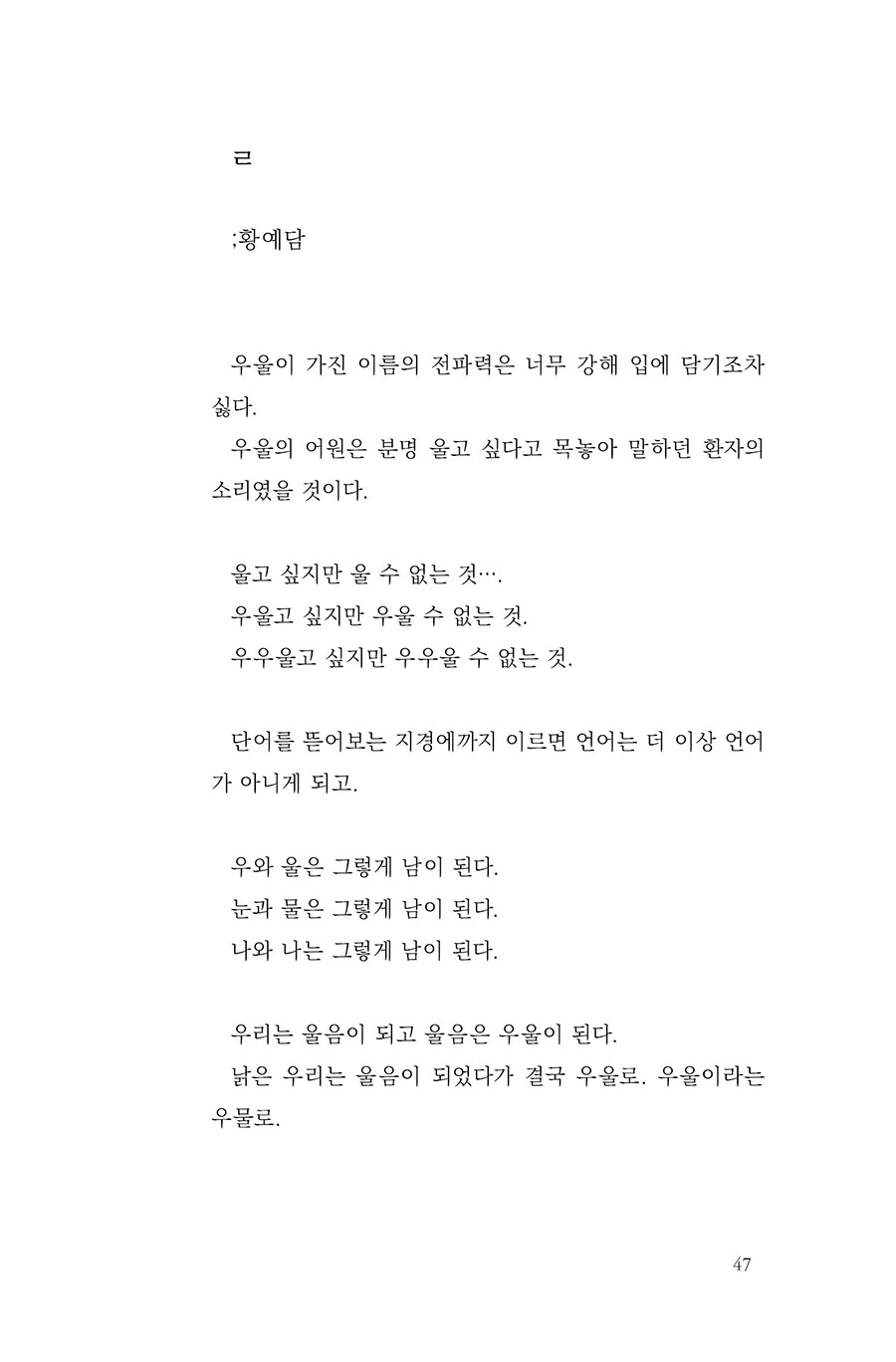 너를 떠올리면 저녁과 자살이 한 문장 안에있을 수 있어; 최예진 66