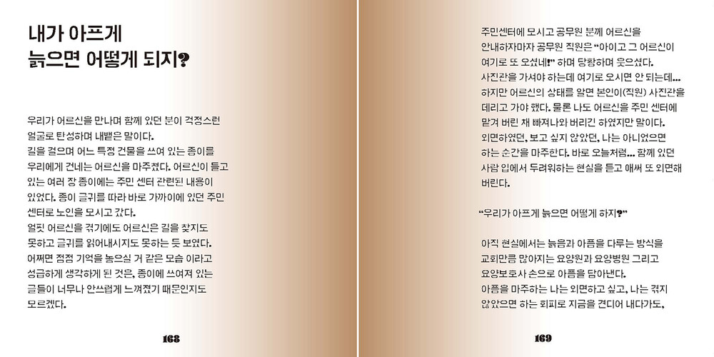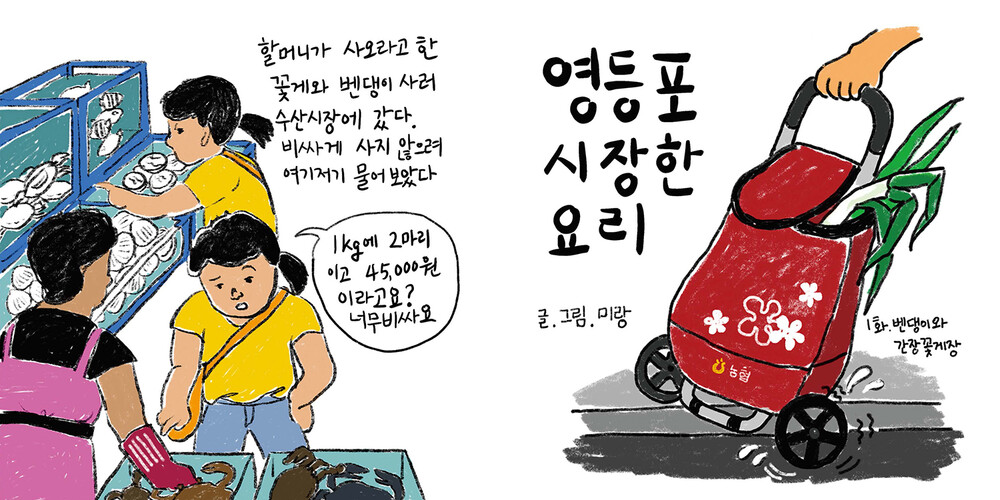 2020년 6월부터 9월까지 영등포 시장 일대와 영등포역 뒤 빨간 벽돌집들에서 만난 할머니들께 ‘시장하실 때 드시는 음식은 뭐가 있으세요? 라는 질문으로 만남을 시작하였습니다. 할머니와 만나는 매체는 ‘요리’ 이었습니다. 요리를 함께 하며 발견 되는 할머니 개개인의 스토리와 개별적 욕구, 노인이 가진 몸의 특징에 대한 탐구가 저의 만화에 담기면 좋겠다는 생각을 하였습니다. 결국은 내가 전하고자 하였던 '내가 할머니가 되었을 때'를 상상하며 이야기를 그려가는 것이 이 이야기의 시작이자 끝인지도 모릅니다. 할머니들을 만나면서 노년이 된 나의 모습과 이야기가 구체화 되고 '만화'라는 매체로 그녀들과의 만남을 생생하게 전달 하고 싶었습니다.