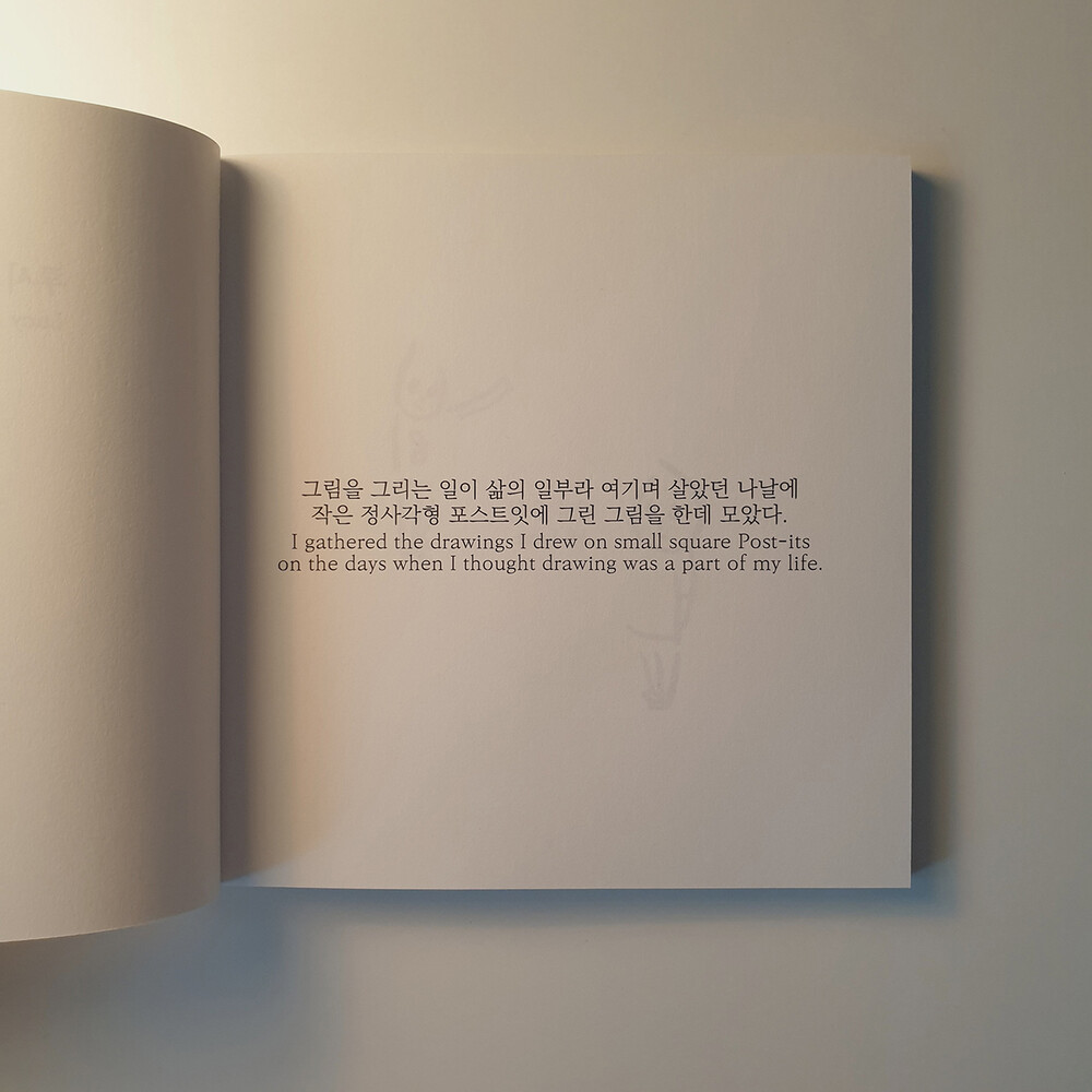 항상 공책을 가지고 다니며 틈만 나면 어디서든 그림을 그리고 글을 쓰던 나는 언제부터인가 점심을 먹은 후 그리고 잠을 자기 전에만 혼자 조용히 앉아 작은 정사각형 포스트잇에 그림을 남기게 되었다. 여기저기 흩어져 있던 포스트잇 그림들을 모아 책을 만들었다.