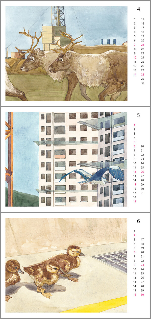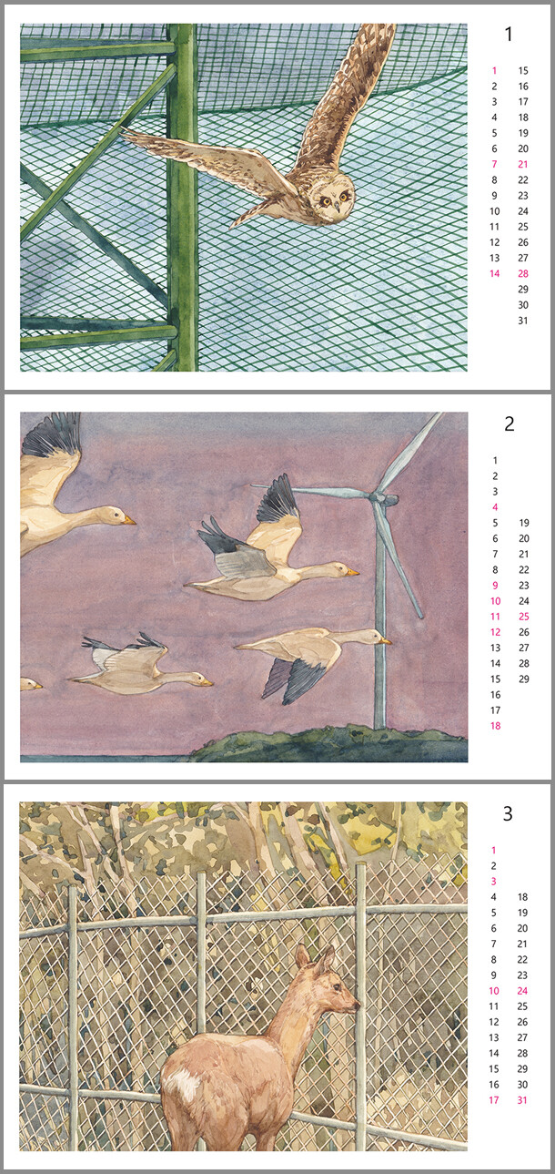 누구든 머무는 집이 있습니다. 종에 맞는 본성에 따라, 세대를 따라 오래 이어져온 습성에 따라 야생동물들도 날마다 또는 계절마다 보금자리로 향해 갑니다. 그들이 집으로 가는 길은 종종 사람이 만든 구조물에 방해를 받곤 합니다. 모두가 무사히 집으로 돌아가기를 바라는 마음을 담아 그림을 그렸습니다.