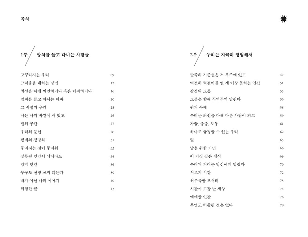 09 꼬꾸라지는 우리_ 12 그리움을 대하는 방법_ 16 최선을 다해 외면하거나 혹은 아파하거나_