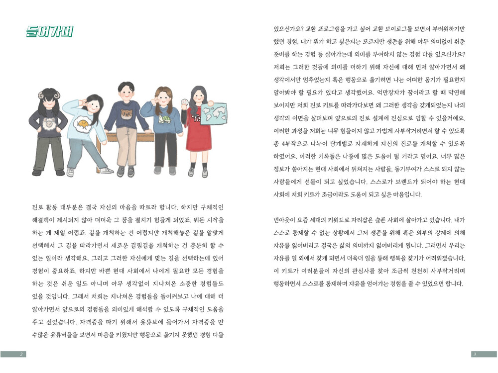 앞으로 펼쳐질 '나'의 진로와 삶의 방향 을 설정하시는 데에 저희 키트가 도움이 될 것입니다.