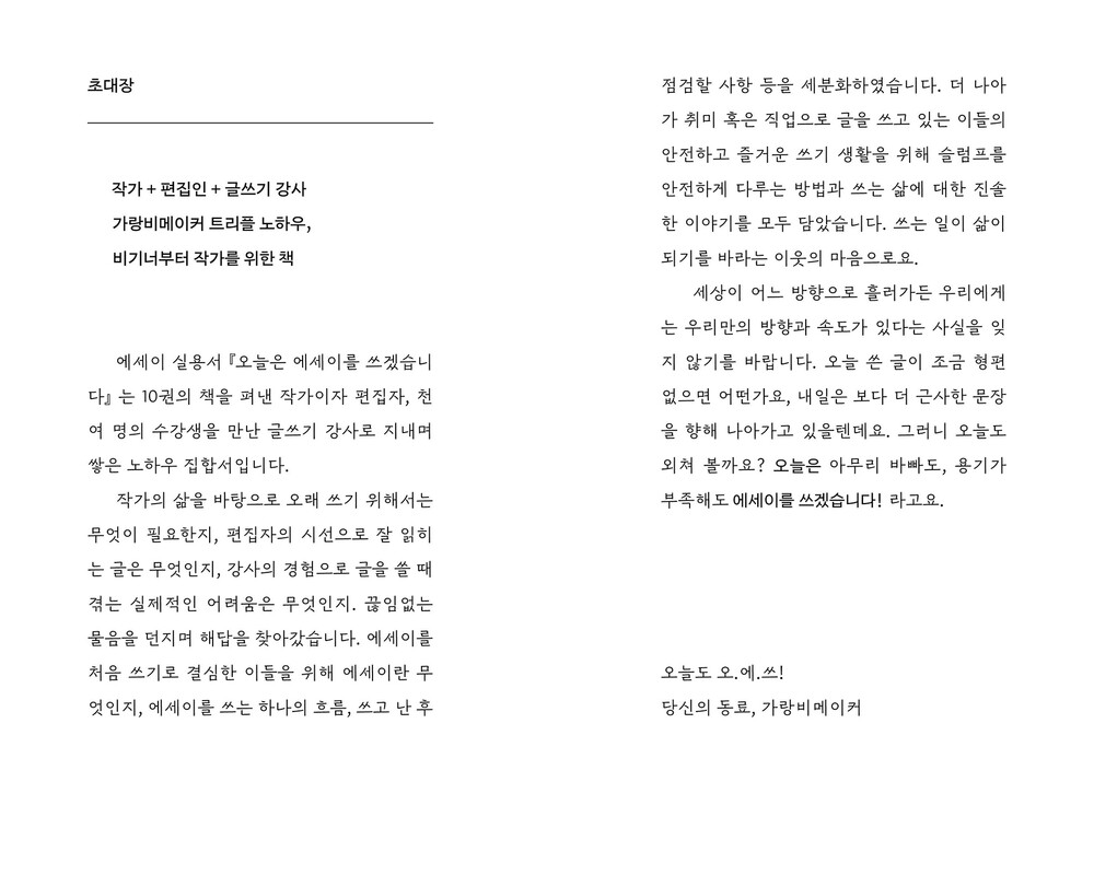 “작가 + 편집인 + 글쓰기 강사, 가랑비메이커의 트리플 노하우 에세이 실용서.”