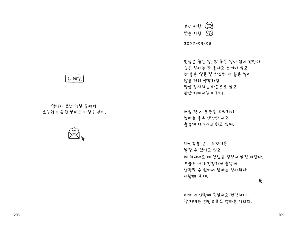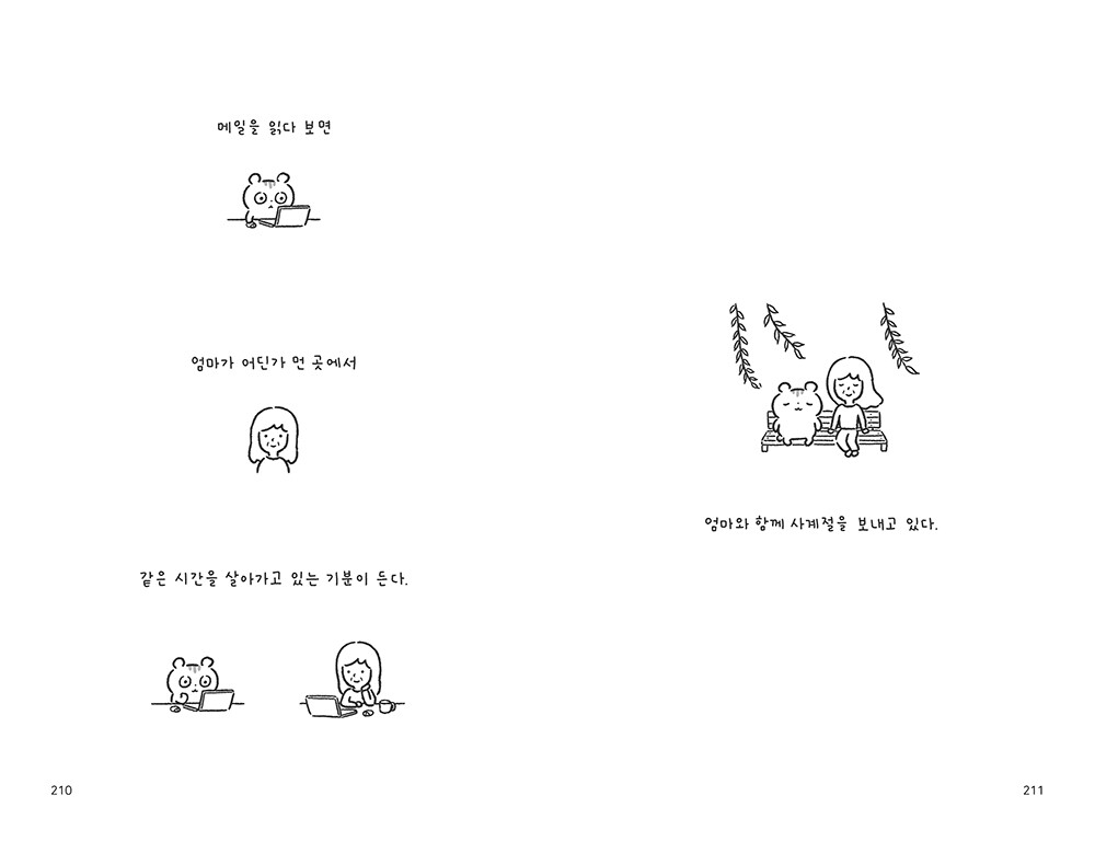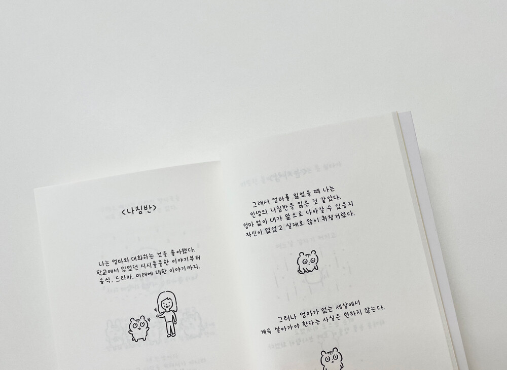 저의 애도 방법이 정답이라고는 할 수 없지만 저와 비슷한 경험을 하신 분들께는 위로와 공감이 되어드리고 아직 겪으시지 않은 분들에게도 가지 않은 길에 대한 안내문 같은 책이 되길 바라며 만들었습니다.