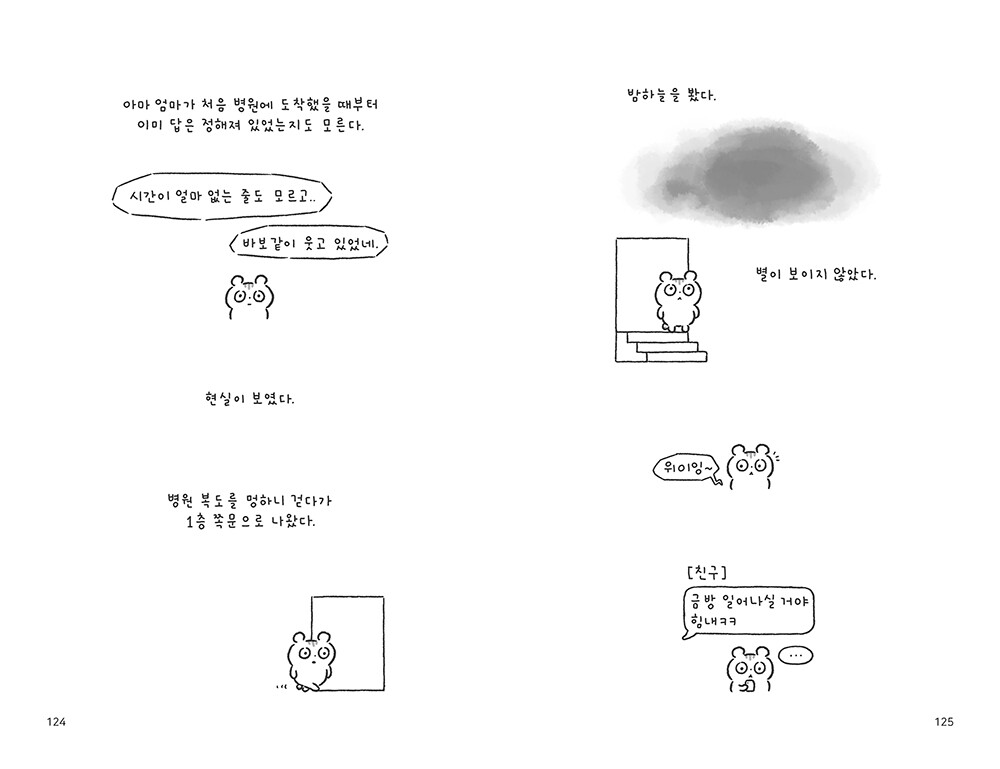 처음으로 겪는 사랑하는 이의 죽음. 어떻게 이겨내야 하는지 배운 적 없는 죽음을 무방비하게 마주하며 엄마를 떠나보냈습니다. 죽음은 인생에서 외면할 수 없는 삶의 그림자라고 생각합니다. 엄마와 함께했던 따뜻한 시간들과 이별 후 여러 시행착오를 통해 앞으로 나아가는 과정을 담은 애도 만화 에세이입니다.