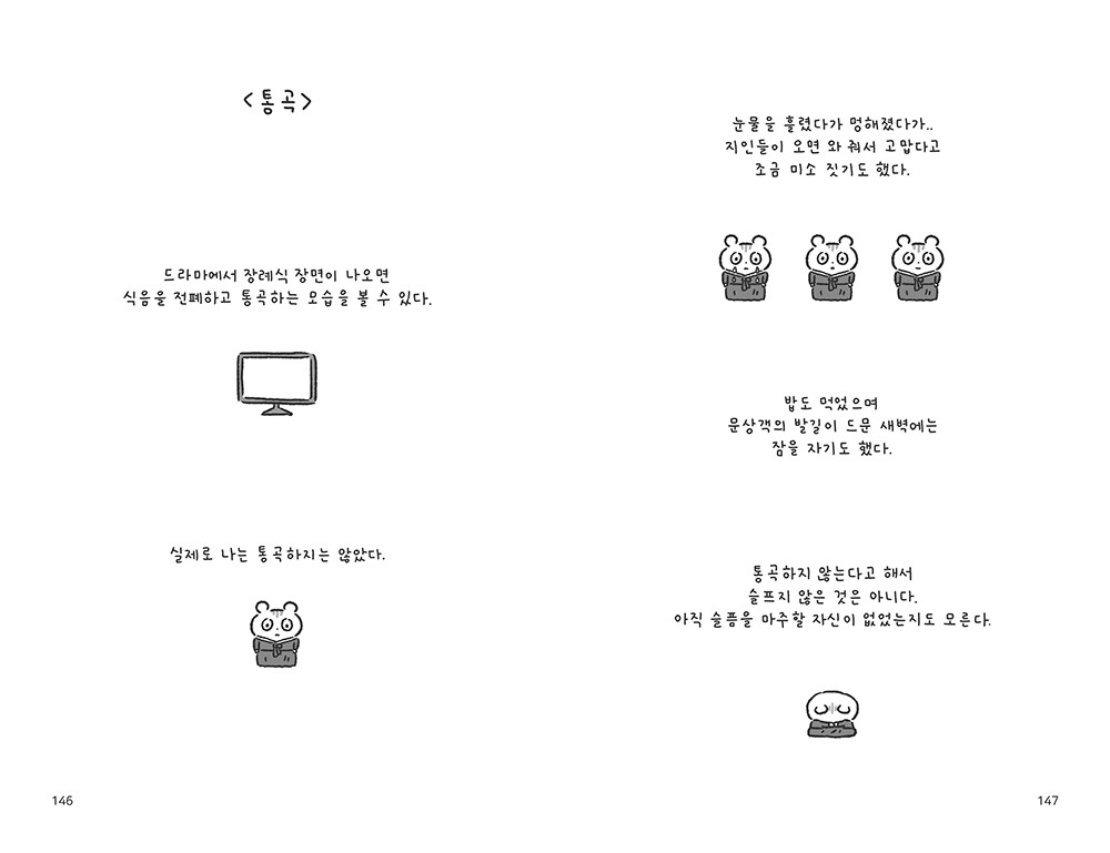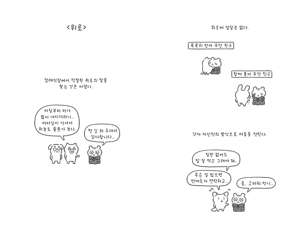애도에 대한 내용을 다루고 있지만 슬픈 이야기로만 가득하진 않습니다. 함께했던 즐거운 시간들도 담겨있어요.