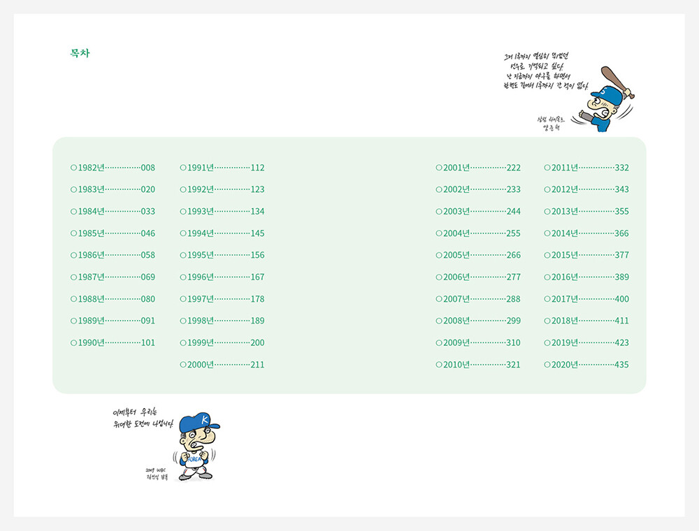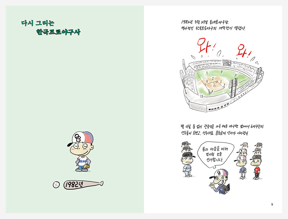 <다시 그리는 한국프로야구사>는 한국프로야구 40여 년의 역사를 한 권에 담았다. 1982년 프로스포츠로 출범하여 2020년까지, 한국프로야구사의 굵직하고도 의미 있는 에피소드를 한 눈에 보는 건 놀라운 경험이다.