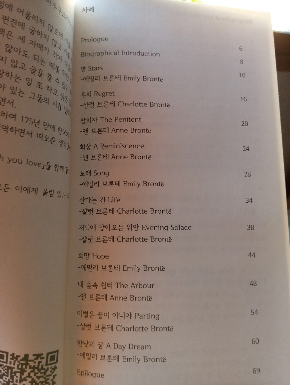 브론테 자매(샬럿, 에밀리, 앤)가 함께 펴낸 첫 책이자 시집인 Poem에서 뽑은 시 11편이 담긴 번역 시집이다. 브론테 자매 시집의 일부가 한국에 소개된 것은 거의 처음이라 할 수 있다. 여성은 시를 쓰는 일에 어울리지 않는다는 당시의 편견에 굴하지 않고 용감하게 시집을 첫 책으로 낸 브론테 자매를 시로 만날 수 있는 좋은 기회이다. 시를 사랑하는 독자에게는 브론테 자매의 문학 세계를 시로 만날 수 있는 좋은 기회를 줄 것이고, 제인 에어, 폭풍의 언덕(워더링 하이츠), 아그네스 그레이로 각각의 브론테를 만난 독자에게는 소설이 아닌 시로 그녀들의 또다른 문학적 면모를 발견하는 기쁨을 얻을 것이다. 번역문과 원문이 함께 수록되어 독자가 비교하며 읽을 수 있도록 했다. 각 시마다 이해를 돕기 위한 Nota bene(일러두기)라는 번역 노트를 비롯해 시 줄거리 요약과 엮고 옮긴이의 감상도 담았다. 책에 담긴 QR코드로 엮고 옮긴이가 번역하며 함께 한 음악을 독자도 감상할 수 있도록 했다.