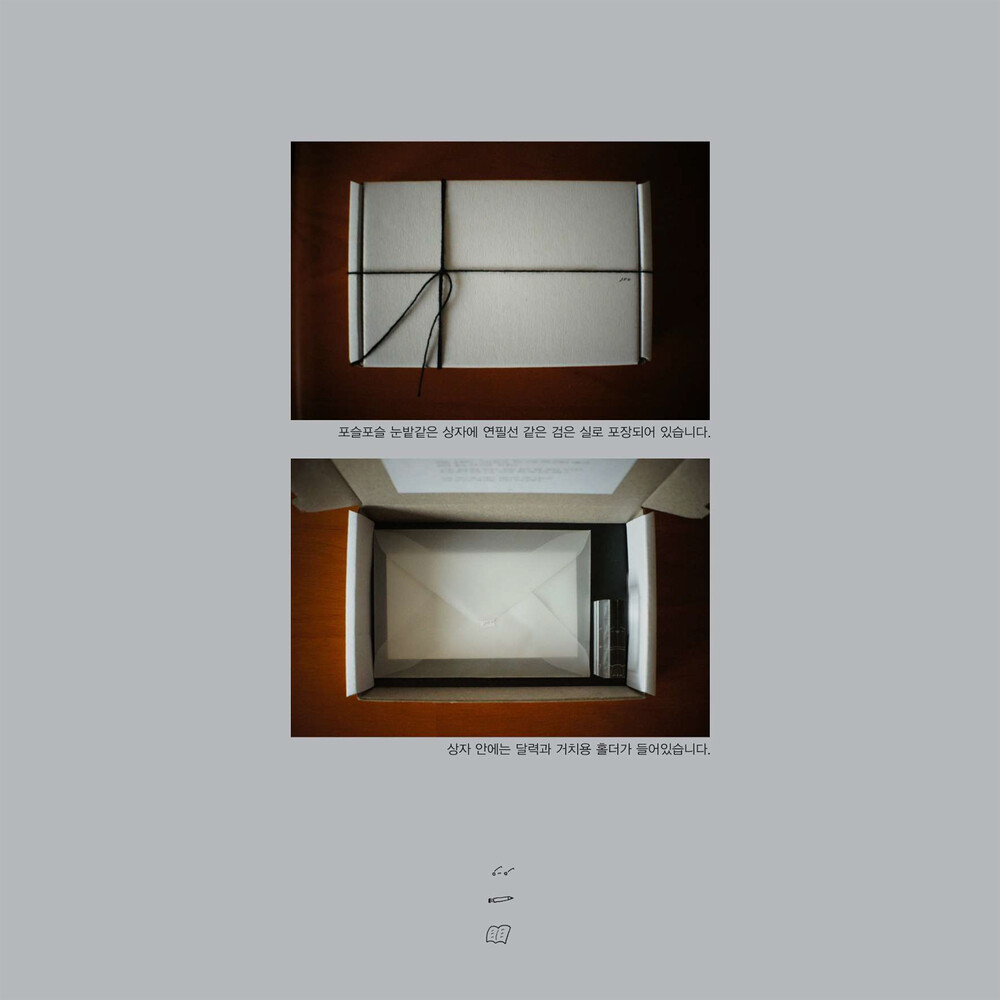 포슬포슬 눈밭같은 상자에 연필선 같은 검은 실로 포장되어 있어 선물하기에도 좋습니다.
